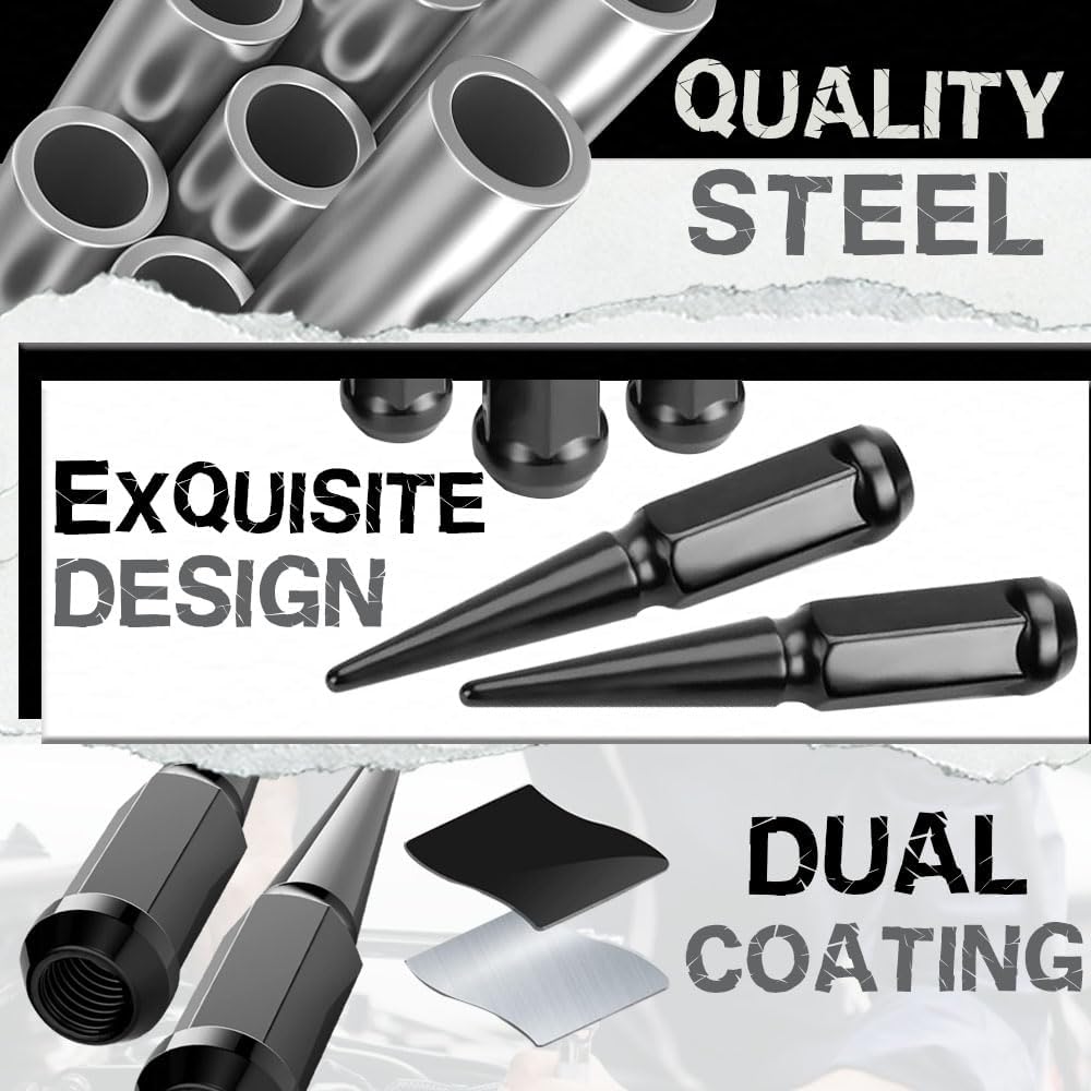 20 قطعة 1/2-20 مخروطي أسود/مخروطي منتفخ عجلة مقعد عجلة سبايك مع مفتاح مقبس واحد متوافق مع دودج رام نيترو رانجلر JK ليبرتي جراند شيروكي فورد إكسبلورر إيدج موستانج جي تي فريستار