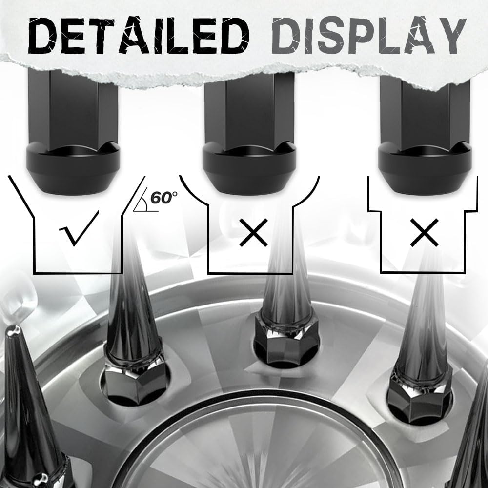 نصائح لطيفة: المركبات ذات صواميل العجلات التي تتطلب 1/2-20 خيط 5 عروات، وتأخذ مقعدًا مخروطيًا بزاوية 60 درجة، يرجى التحقق من نوع المقعد من صواميل العروة الأصلية أولاً قبل تقديم طلبك
