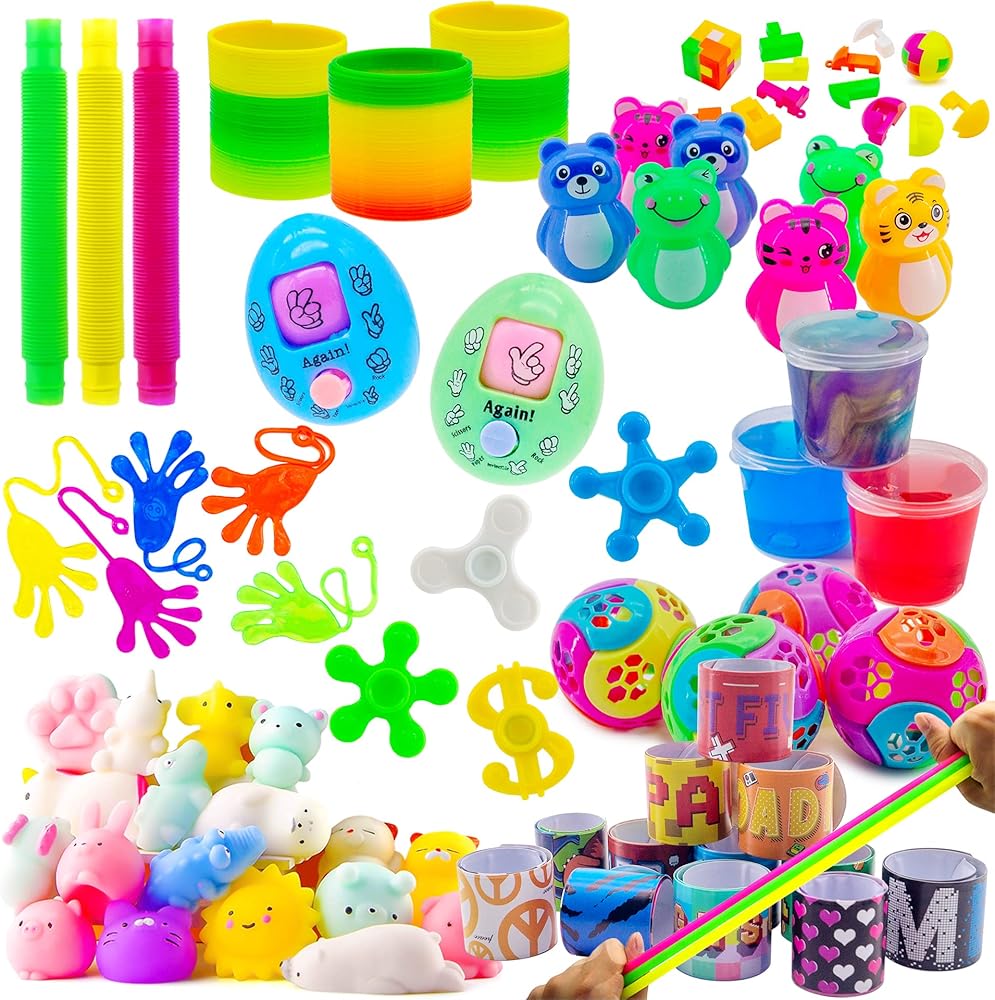 تتضمن العبوة إسفنجي ومكعب سحري صغير وأحجيات متاهة وأساور سلايم وأيدي لاصقة وما إلى ذلك.