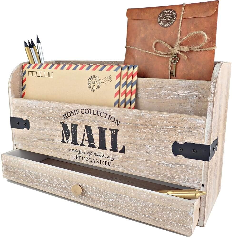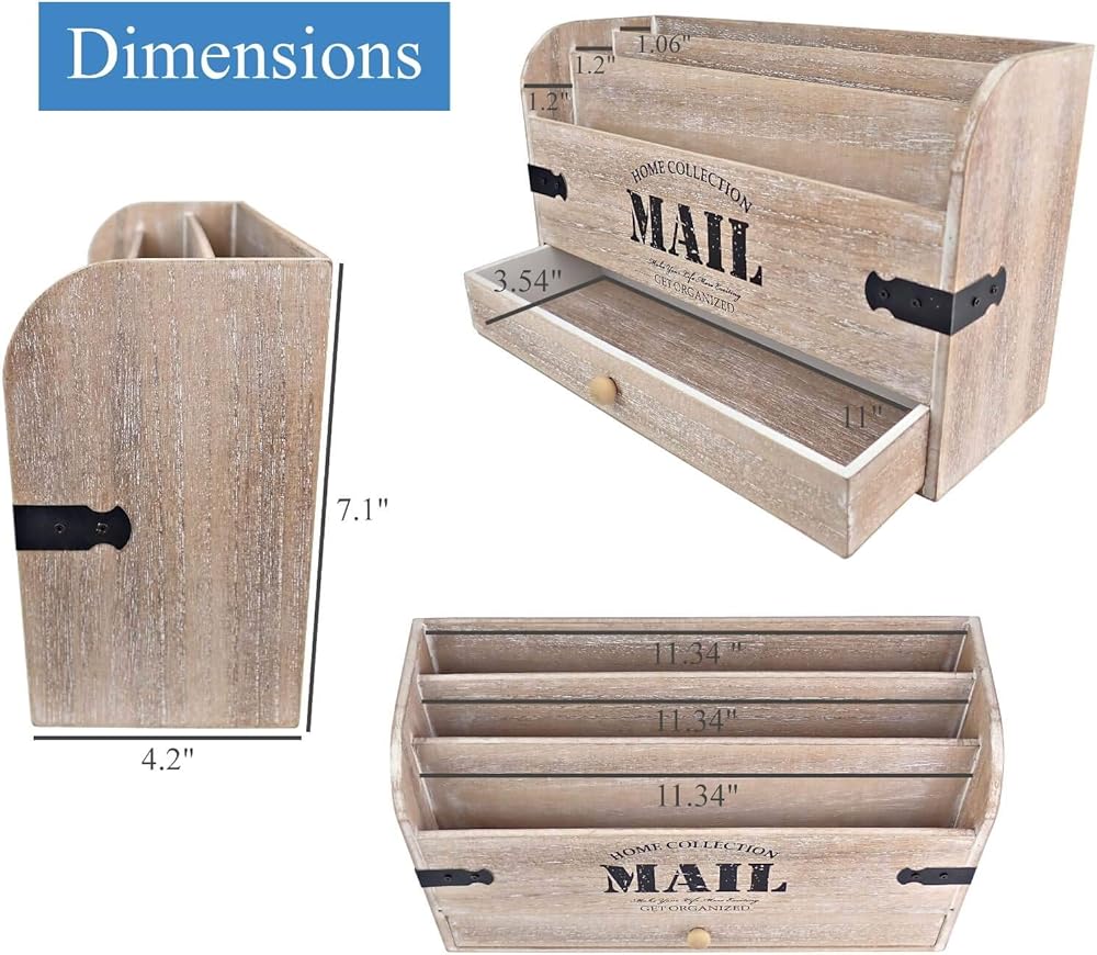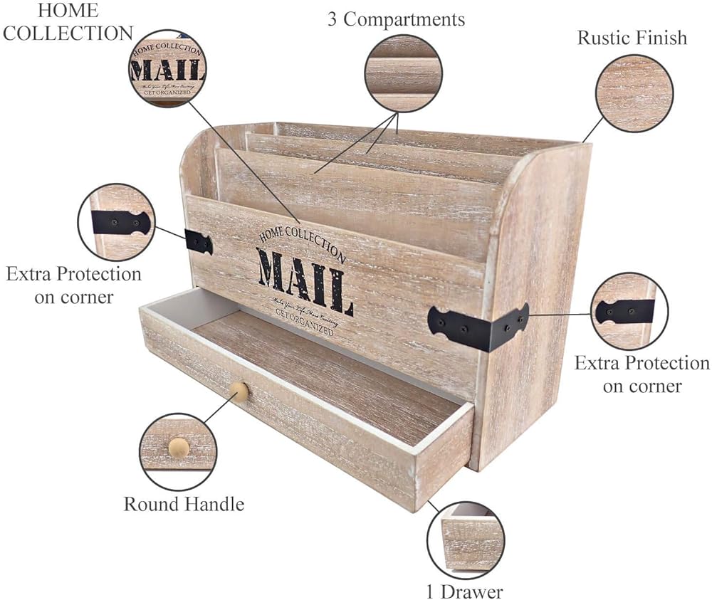 حجم مثالي - هذا ليس مجرد منظم حروف "شيئ أو شيئين". بفضل حجمها، تتيح لك سلة البريد الخشبية هذه تخزين الكثير من البريد، الكبيرة والصغيرة وجميعها منظمة في 3 مساحات مختلفة.
