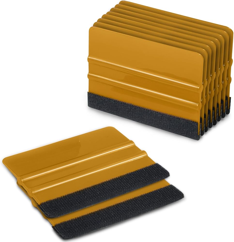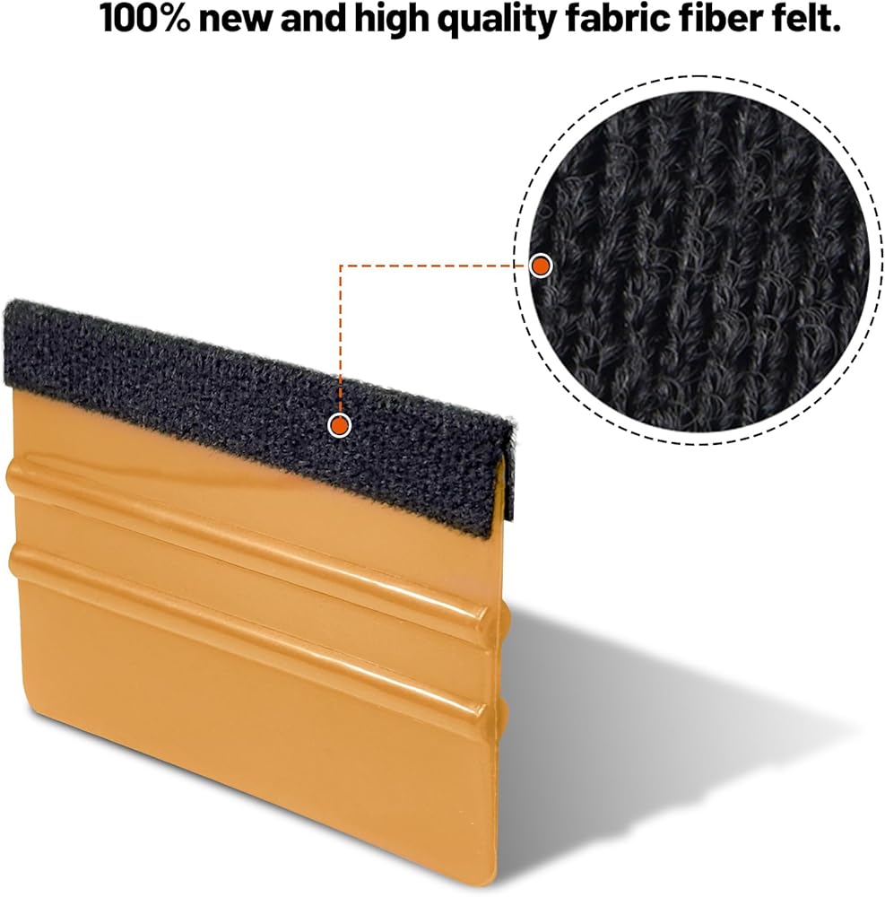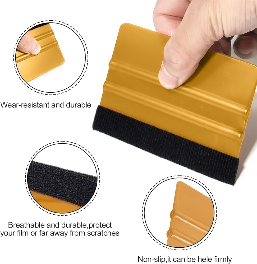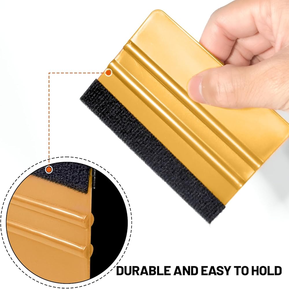 ممسحة لباد السيارة للفينيل، مكشطة بلاستيكية بحافة لباد، أداة تطبيق تثبيت الفينيل، ممسحة احترافية لفيلم السيارة خالية من الخدوش (ذهبي، 10 عبوات)