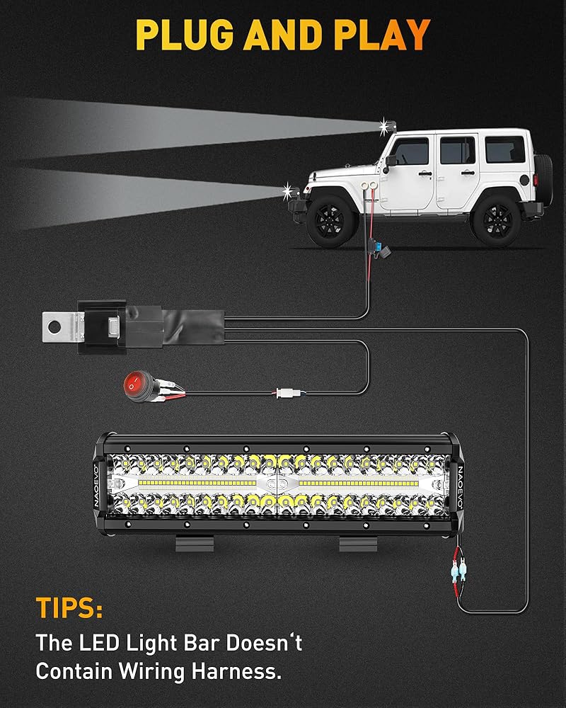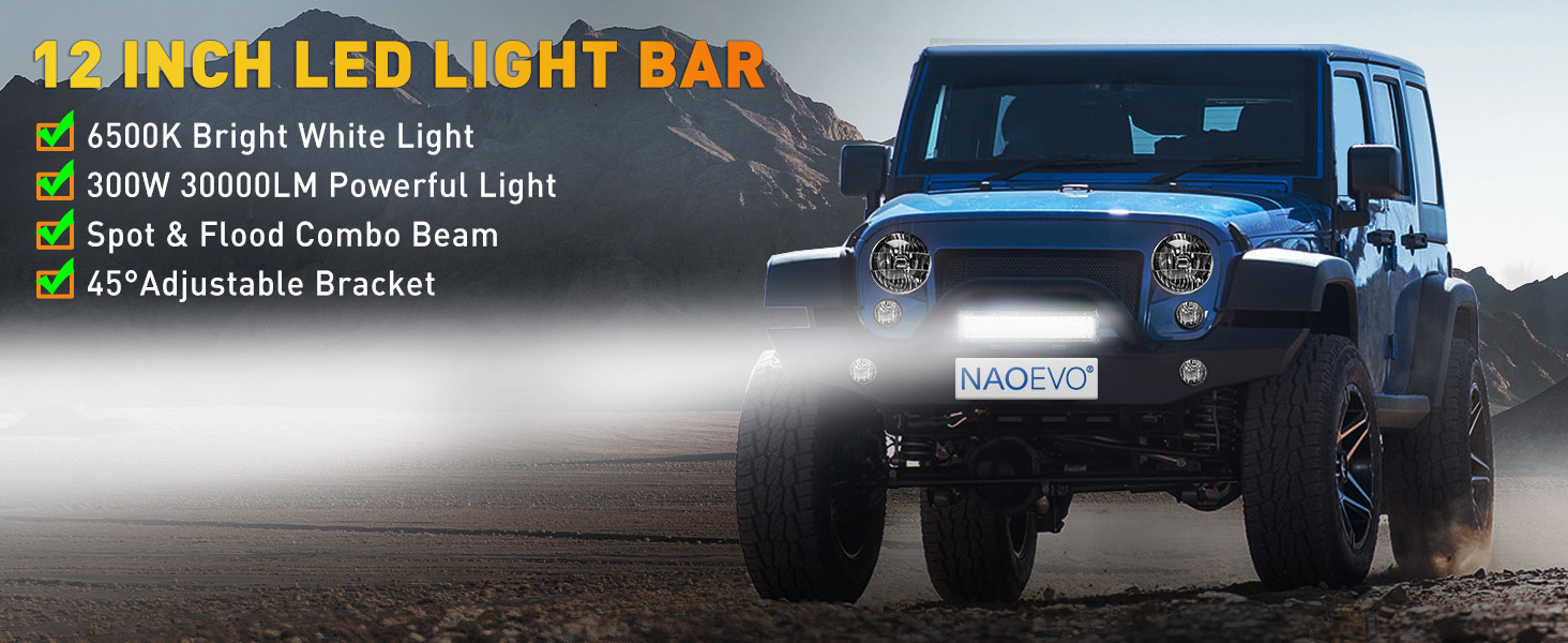 🚙【إضاءة LED فائقة السطوع】يحتوي شريط الإضاءة NAOEVO مقاس 12 بوصة على إجمالي 100 قطعة من رقائق SMD3030 LED عالية الجودة بالداخل، مما يحقق تأثيرات إضاءة تبلغ 300 وات/30000 لومن. ضوءه الأبيض الساطع والقوي بقوة 6500 كلفن يهزم الظلام أمامك بسهولة، مما يساعدك على القيادة بأمان وكفاءة!