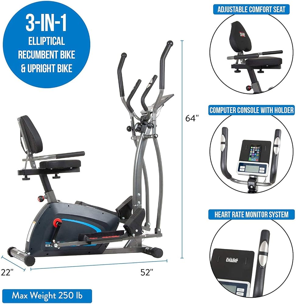 تصميم متعدد الوظائف: مع تصميم 3 في 1 حاصل على براءة اختراع، يمكن لهذا المدرب الثلاثي أن يعمل كمدرب بيضاوي، ودورة ثابتة منتصبة، ودراجة مستلقية. وفر المساحة واحصل على جميع تمارين القلب التي تحبها مع هذا الجهاز القابل للتحويل
