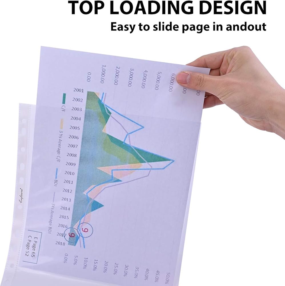 التحميل العلوي: تتميز واقيات الصفحات البلاستيكية بسهولة التشغيل. يمكنك إدخال ورق مقاس 8.5 × 11 بوصة بسرعة وسهولة في الجزء العلوي من الورقة الواقية. إن استخدام واقيات التحميل العلوي هذه يمكن أن يجعل عملك أكثر كفاءة ومتعة. يمكن إضافتها بسهولة إلى أي مجلد قياسي ثلاثي الحلقات، مع وضع فتحات متعددة لتناسب أي مجلد.