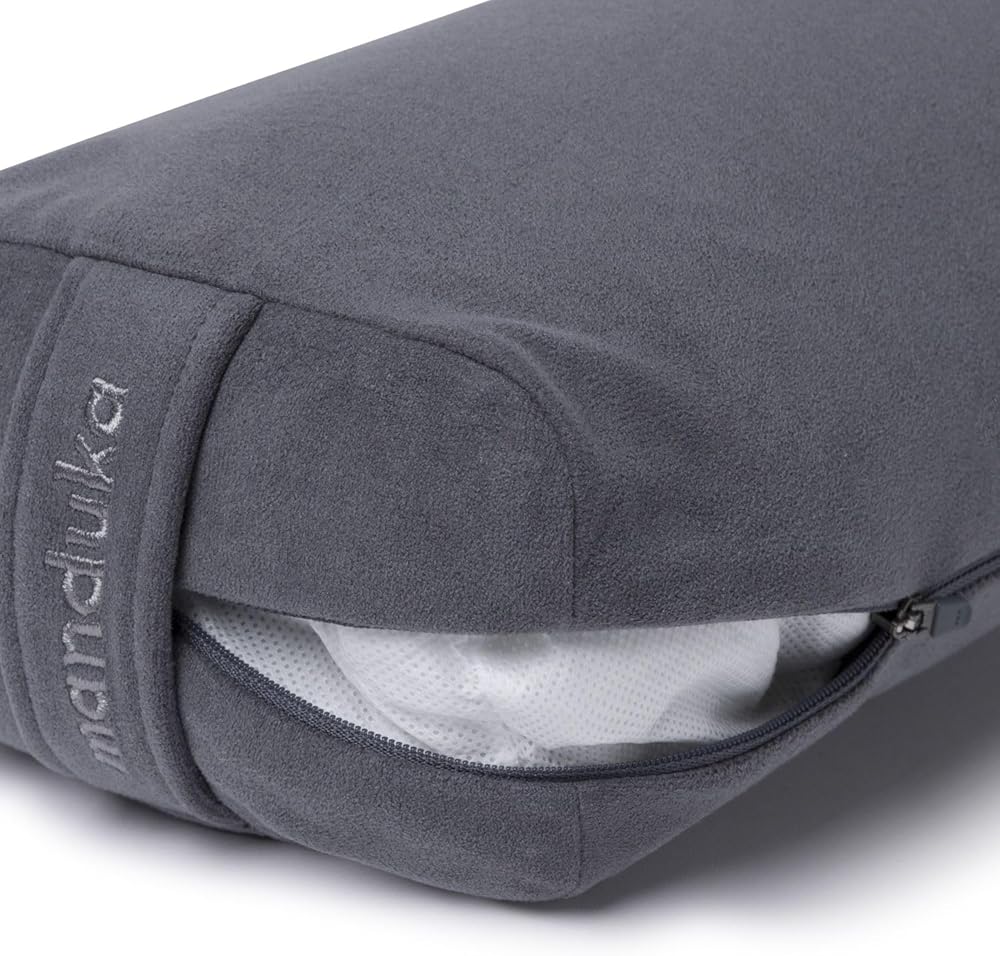 مسند اليوجا: احصل على بعض الدعم الإضافي مع مسند ماندوكا المستطيل. يدعم الجسم أثناء ممارسة اليوجا أو التأمل أو اللياقة البدنية. يتميز غطاء Manduka's eQua المصنوع من الألياف الدقيقة بملمس فخم يشبه الجلد السويدي وقابل للإزالة بالكامل