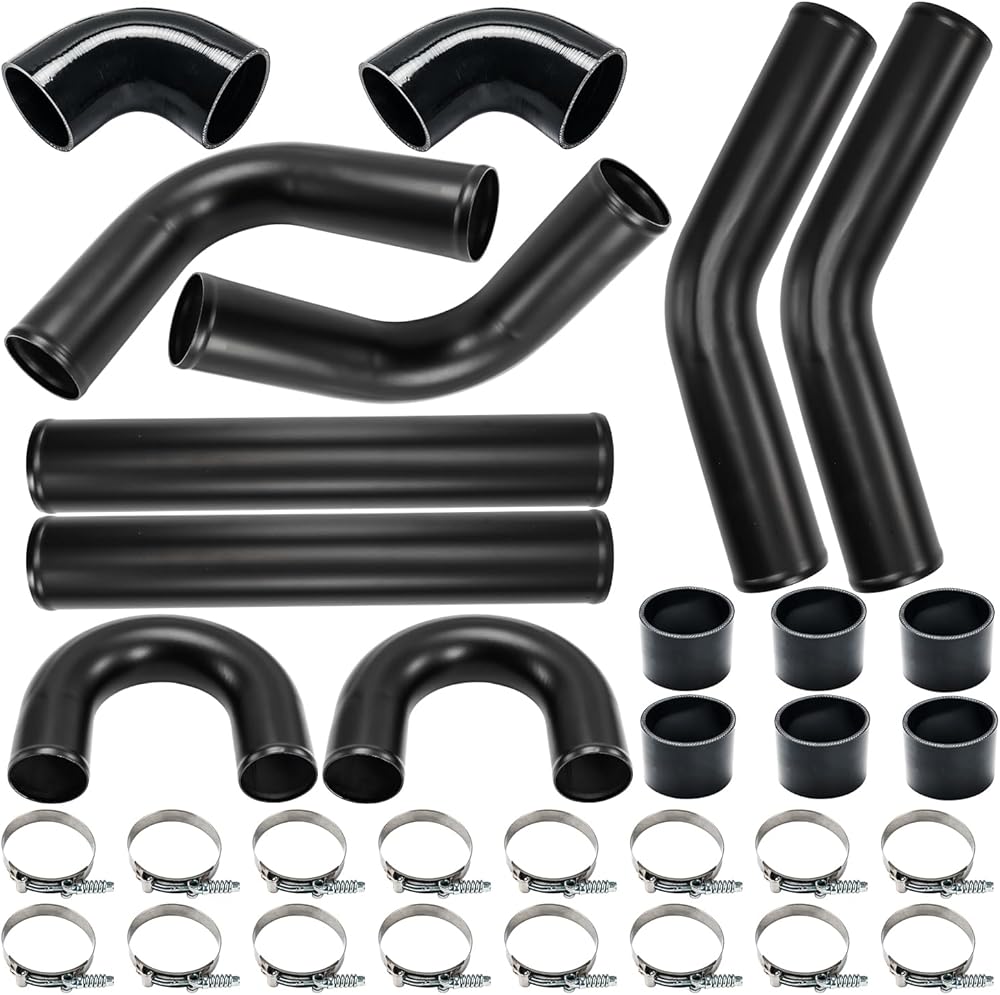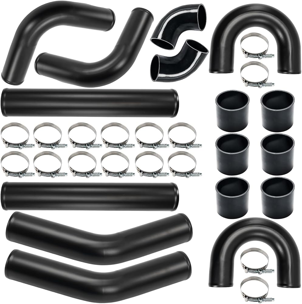 3"Intercooler Kit, PHILTOP Turbo Intercooler Piping Universal 1.8mm Aluminum Intercooler Pipe Kit with Coupler Black and T-Clamps - 32Pcs