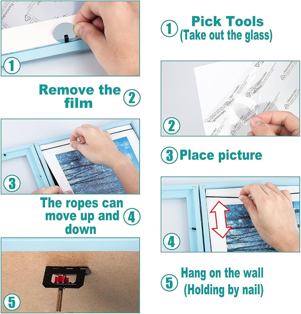 【Easy to Use】Our frame comes with all the necessary hardware for easy installation. Simply insert your artwork, secure it with the included clips, and hang it on the wall. It's a hassle-free way to display your precious artwork.