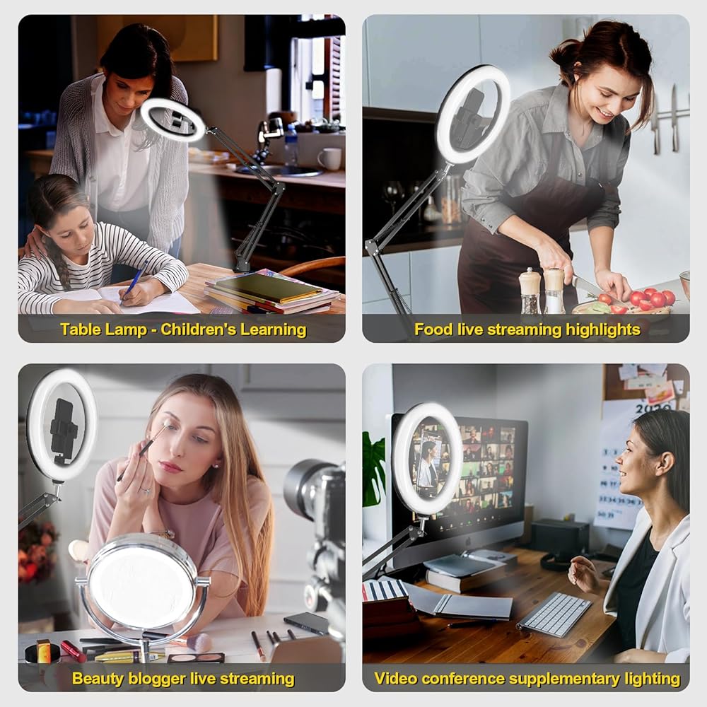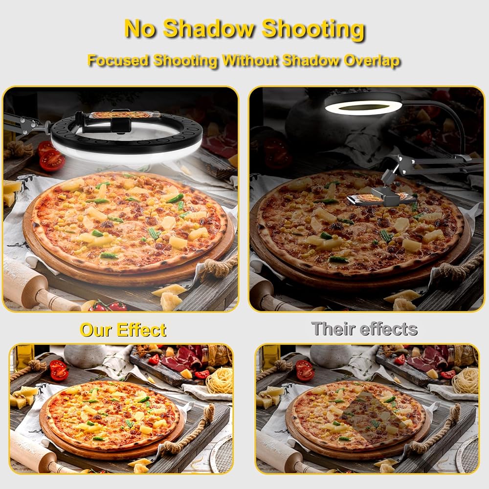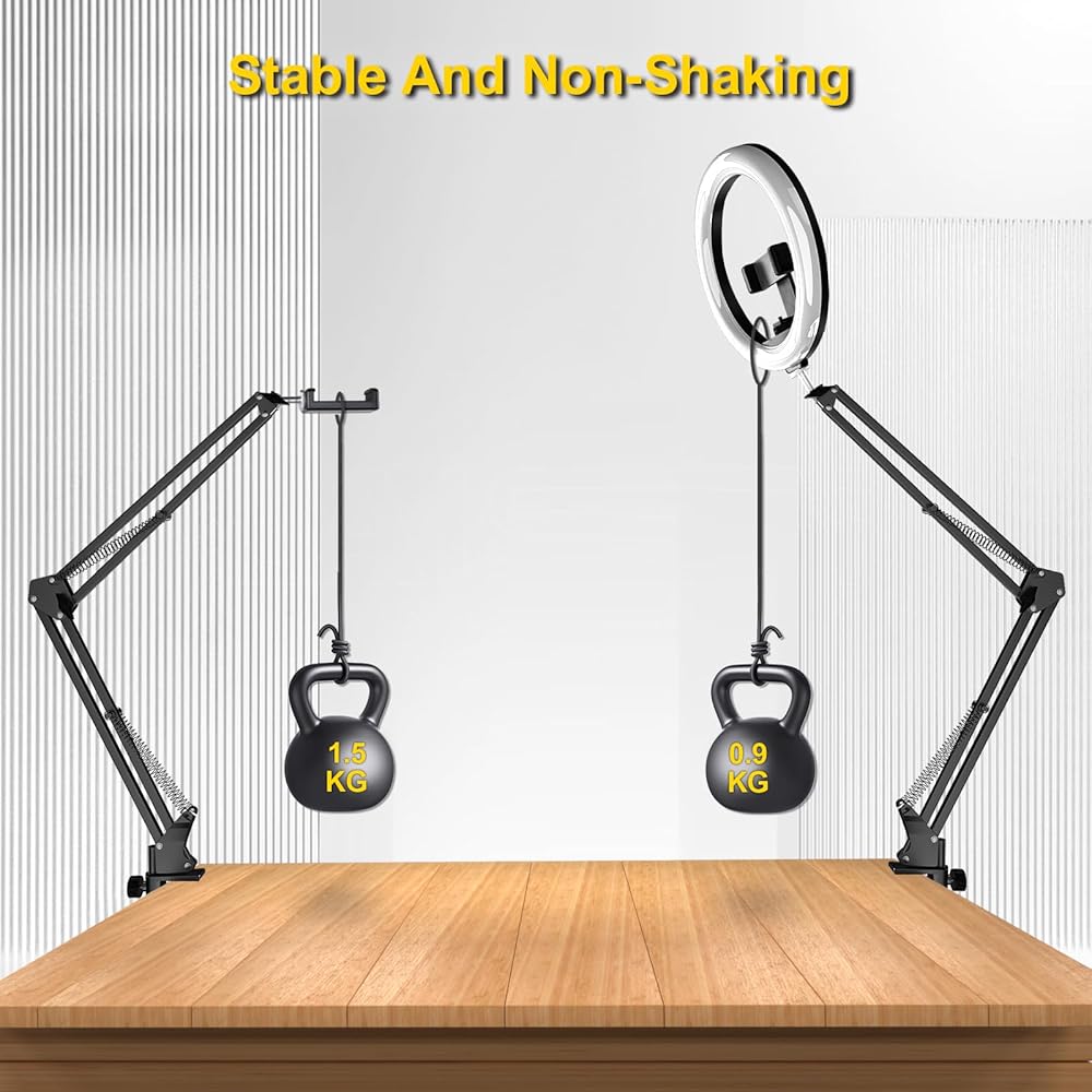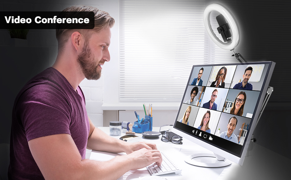 【إضاءة دائرية لسطح المكتب مقاس 10 بوصة】بالمقارنة مع دعامات الإضاءة الدائرية التقليدية، لا يقوم حامل الهاتف العلوي هذا بترقية حجم الضوء الدائري فحسب، بل يحل أيضًا مشكلة الضوء فوق الهاتف الذي عادة ما يتم حجبه بواسطة الهاتف وظهور الظل. أسفل الهاتف. يوفر هذا الضوء الدائري لسطح المكتب ضوءًا كافيًا لوضع الهاتف في وسط الضوء الدائري، مما يضمن عدم إعاقة الضوء وعدم ظهور الظلال في الصور.