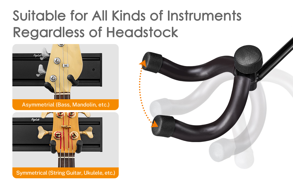 [أوضاع شماعات مرنة وقابلة للتخصيص] يسمح لك حامل جدار جيتار Pogolab بتعديل وتخصيص أوضاع كل شماعة بسهولة لتناسب القيثارات الخاصة بك تمامًا. يمكن تحريك الشماعات إلى اليسار أو اليمين للحصول على موضع مثالي وتدويرها 180 درجة للحصول على أفضل زاوية عرض.