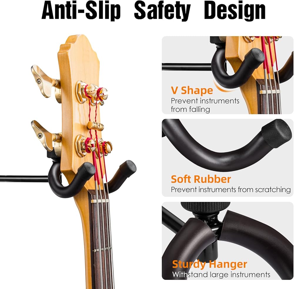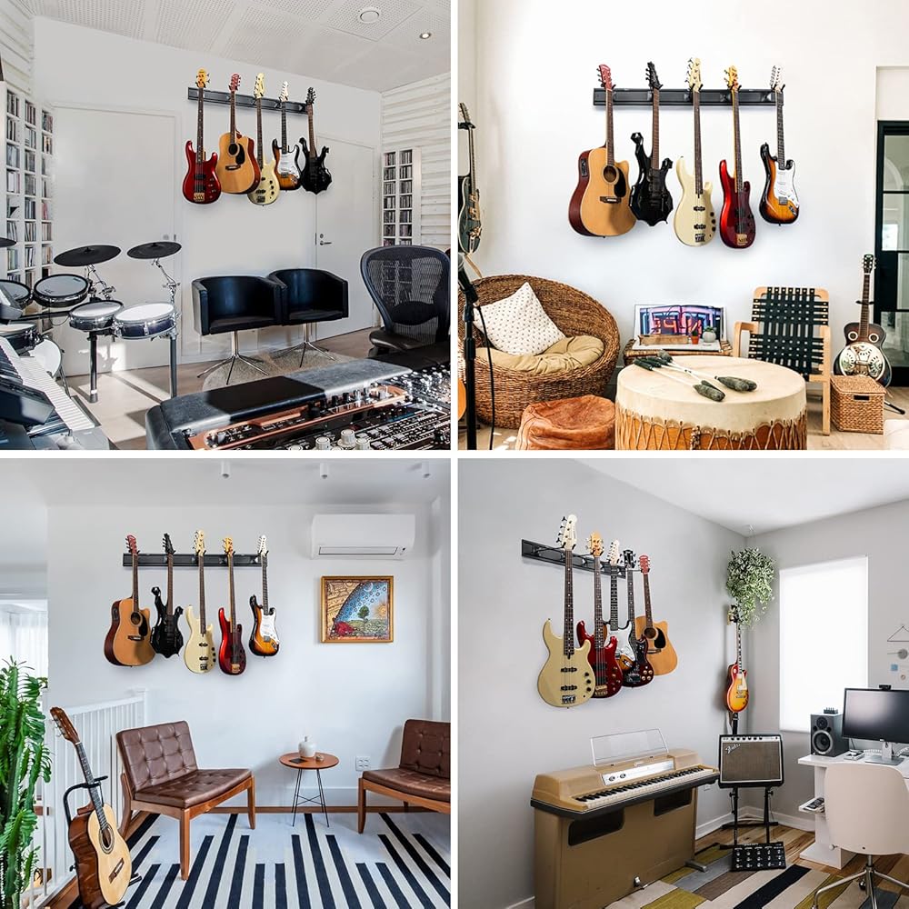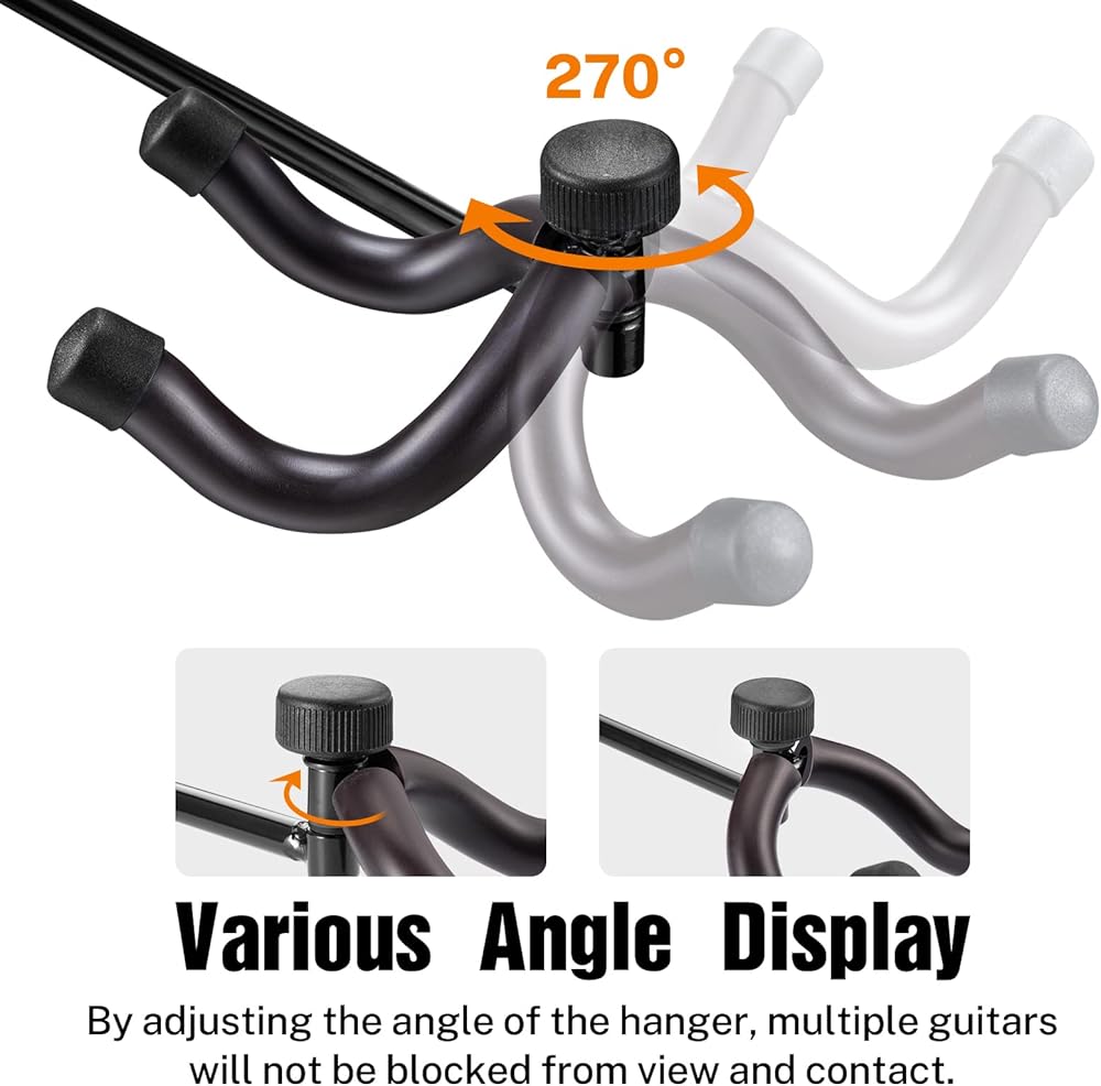[توافق عالمي للجيتار] هذا الحامل على الحائط مناسب لحمل 5 جيتار مع أغطية رأس مختلفة، مثل الصوتية والكلاسيكية والكهربائية والجير والقيثارة والمندولين والمزيد. إنه الحل الأمثل للموسيقيين الذين يرغبون في الحفاظ على أدواتهم منظمة وفي متناول اليد.