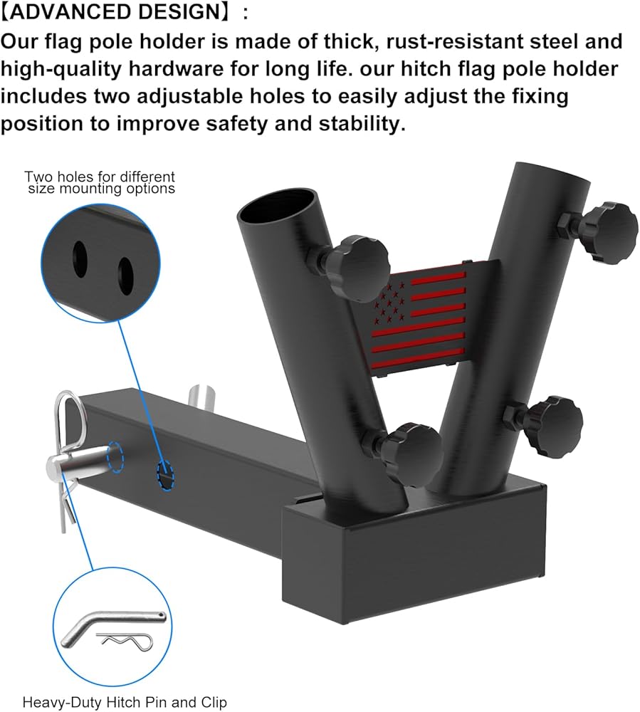 حامل عمود علم وصلة ربط، وصلة ربط عمود الشاحنة تناسب أجهزة الاستقبال القياسية مقاس 2 بوصة، محول مع سيارة جيب، وRV، والتخييم، وسيارات الدفع الرباعي، والالتقاط، وحامل شاحنة مع برغي مضاد للتمايل