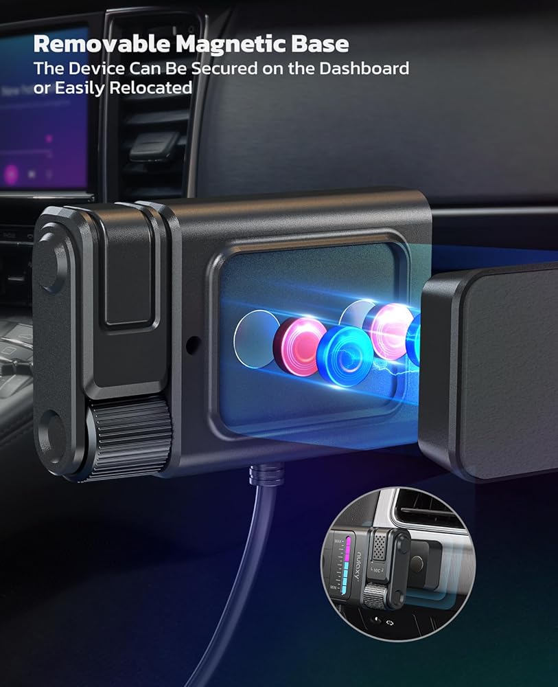 • Flexible Magnetic Design: Our bluetooth aux transmitter boasts an innovative, detachable magnetic base design. Whether you want to fix the device next to the dashboard for easy operation, or place it elsewhere to save space, this magnetic base meets your needs, making your car interior tidier and more efficient.