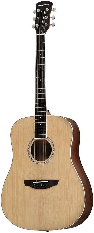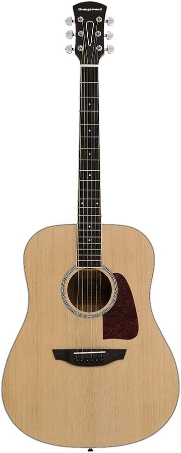 Orangewood Manhattan Dreadnought Acoustic مع جزء علوي من شجرة التنوب، وحقيبة حمل مبطنة، ومجموعة ملحقات تشمل الحزام، والموالف، واللقطات، والكابو