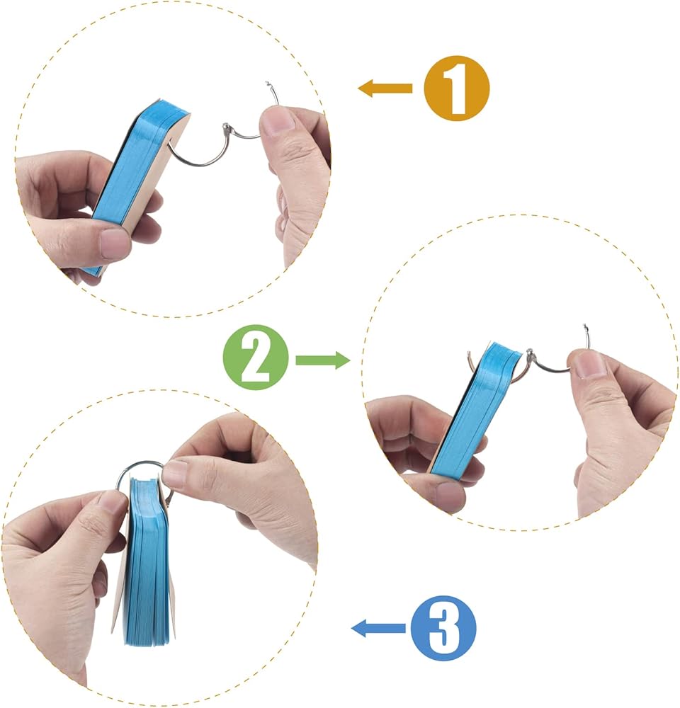 • حجم محمول - لسهولة الفرز والاستخدام الآمن، تم تشكيل جميع البطاقات على حواف دائرية وتتميز بفتحة مثقوبة مسبقًا. تأتي مع 8 حلقات لسهولة التصنيف حتى تتمكن من الحفاظ عليها أنيقة ومنظمة بسهولة. يبلغ مقاس كل بطاقة 3.5 سم × 2.2 سم؛