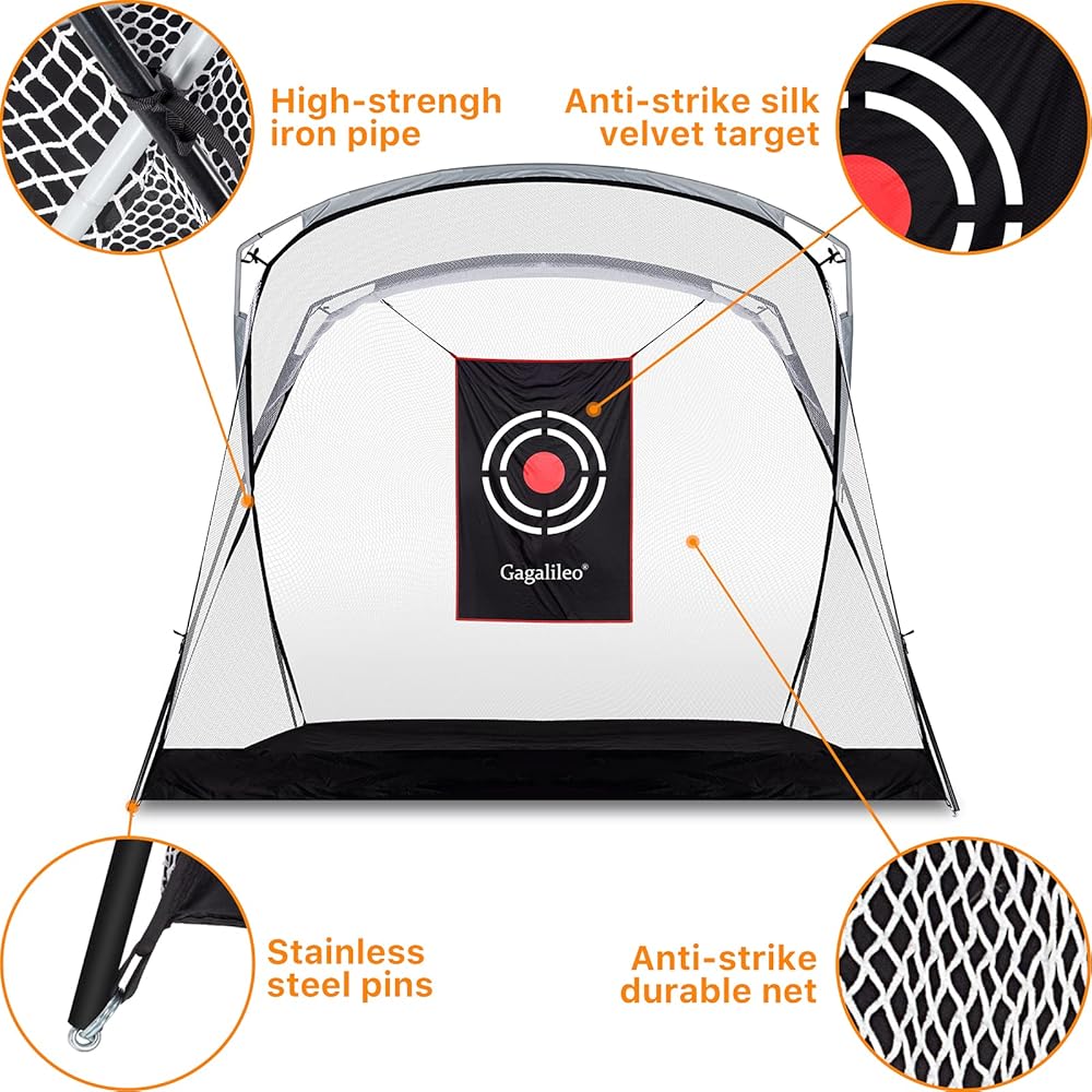 🏌️ سهل التجميع: مع 5 دقائق فقط لإعداد شبكة تدريب الجولف والكسر في 3 دقائق. تعتبر شبكة الجولف الخلفية مناسبة لتحسين مهاراتك بغض النظر عن المطر أو أشعة الشمس. اختر شبكة جاليليو، واصطحب نوادي الجولف الخاصة بك، واشعر بمتعة لعب الجولف مع أصدقائك وعائلتك! تحتوي كل شبكة جولف على حقيبة حمل متينة لمساعدتك على التخزين والحمل بسهولة!