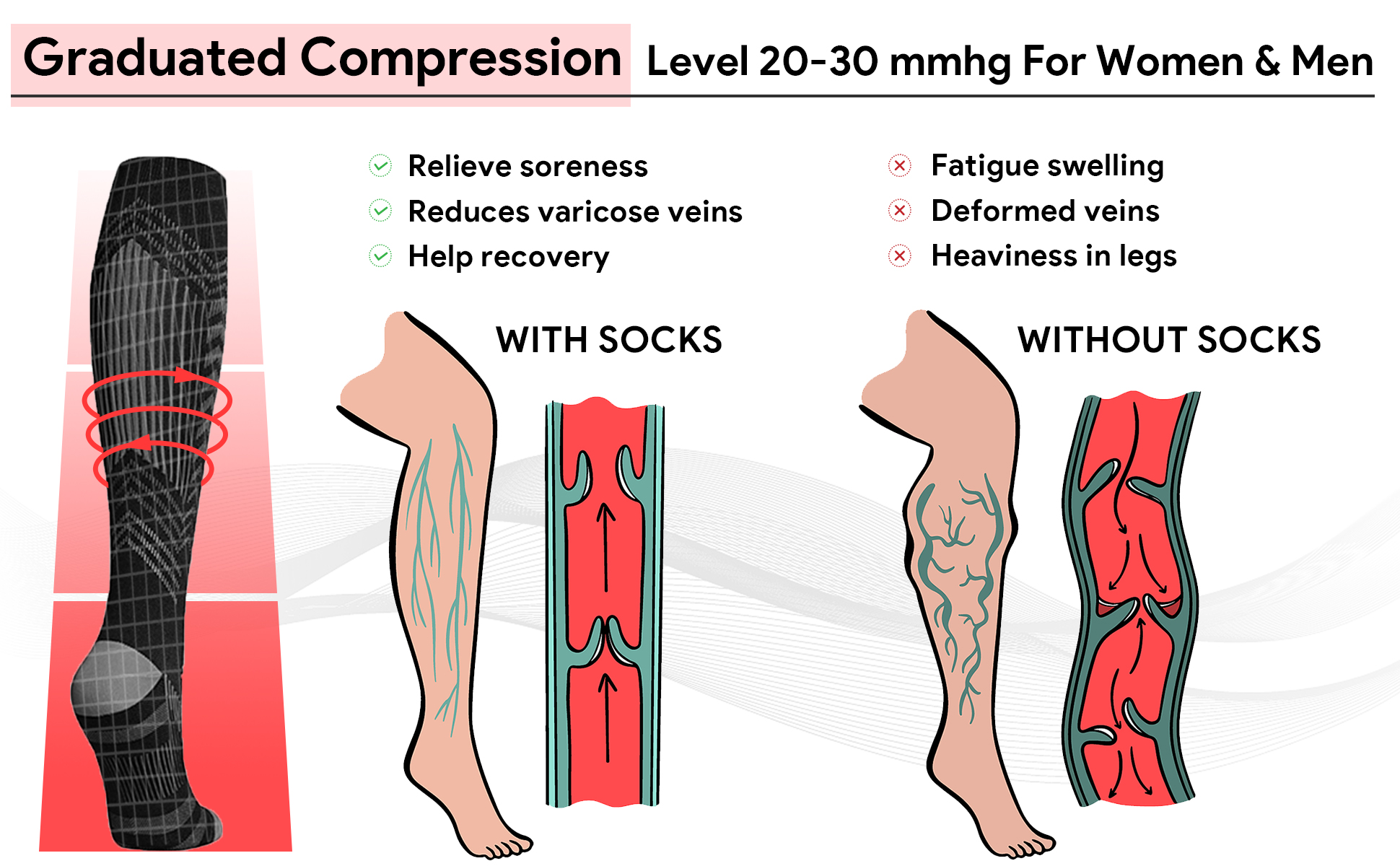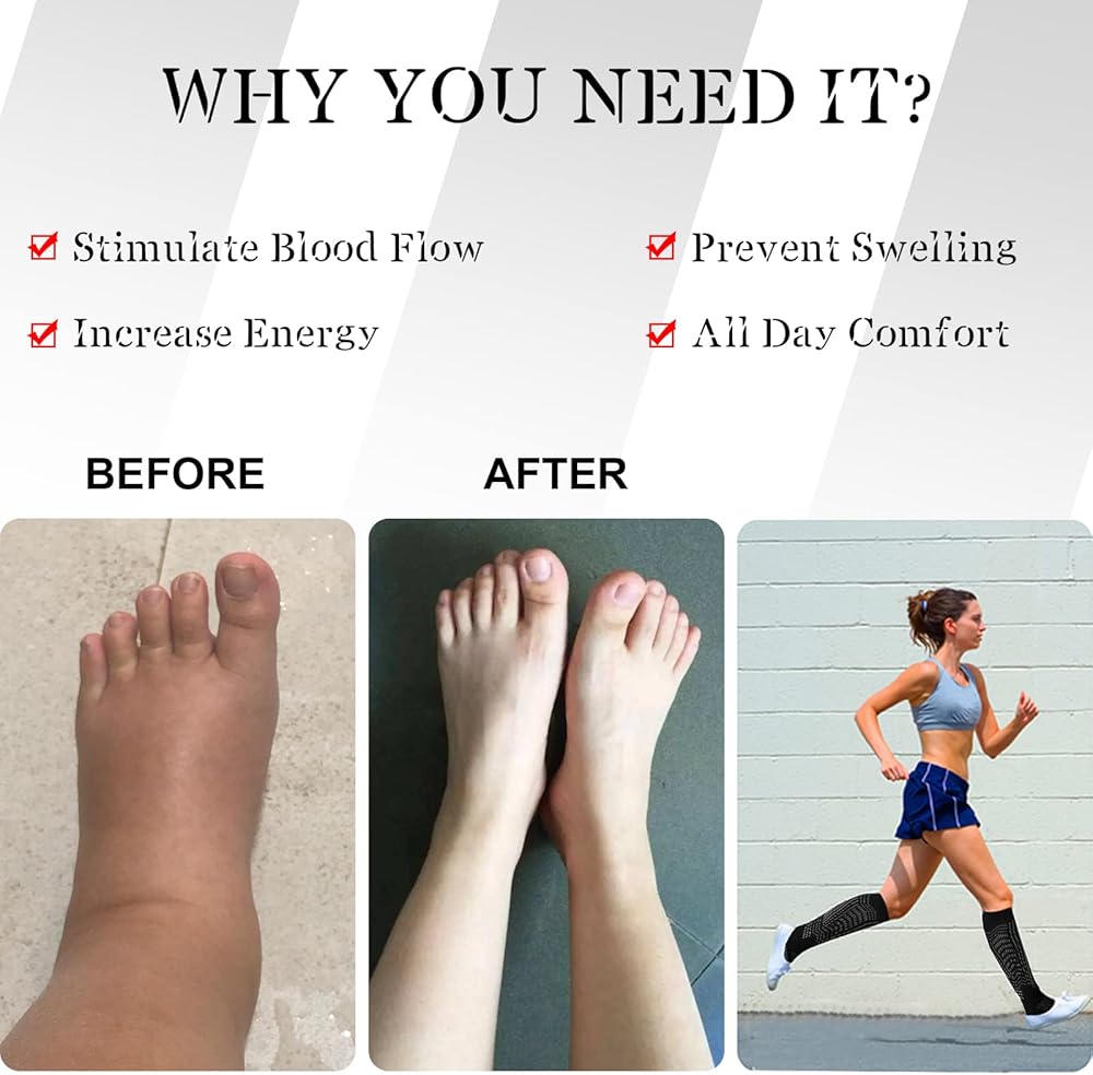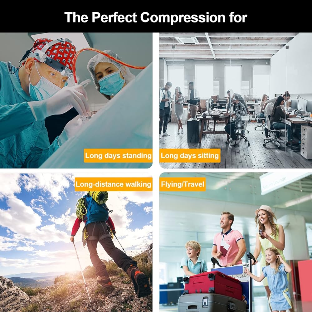 • 🌈【قل وداعًا لألمك】إذا كانت وظيفتك تتطلب الجلوس أو الوقوف لفترة طويلة، فأنت حقًا بحاجة إلى زوج من الجوارب الضاغطة! يبقيك بعيدا عن وجع العجل ويقلل من التعب. يحمي كاحلك، ويقوي إصبع القدم والكعب، ويوفر التوسيد. مثالي للمعلمين والممرضات والعاملين في المكاتب والصرافين والرياضيين والسائقين والحوامل وكبار السن والمشي لمسافات طويلة وركوب الدراجات والمسافرين المتكررين والمسافرين الجويين.