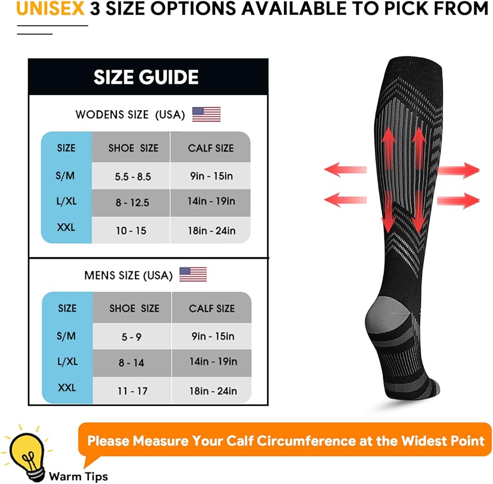 • 🌈【الانتقائية والمتانة】بالإضافة إلى المقاسات S/M وL/XL، نضيف مقاسًا إضافيًا XXL/3XL ليختار الجميع من بينها. مع المزيد من الشمولية، يمكن لأي شخص بالغ تقريبًا ارتداء الجوارب ذات الأكمام الضاغطة للساق. لاختيار المقاس، يرجى الرجوع إلى جدول المقاسات الخاص بنا لتحديد المقاس الأفضل لك. توفر الجوارب الضاغطة العاكسة تمددًا 360 درجة لمزيد من المرونة. نسيج مسامي عالي الأداء يحافظ على درجة الحرارة المثالية. البكتيريا والرطوبة للحصول على أقصى مستوى من الراحة للقطن.