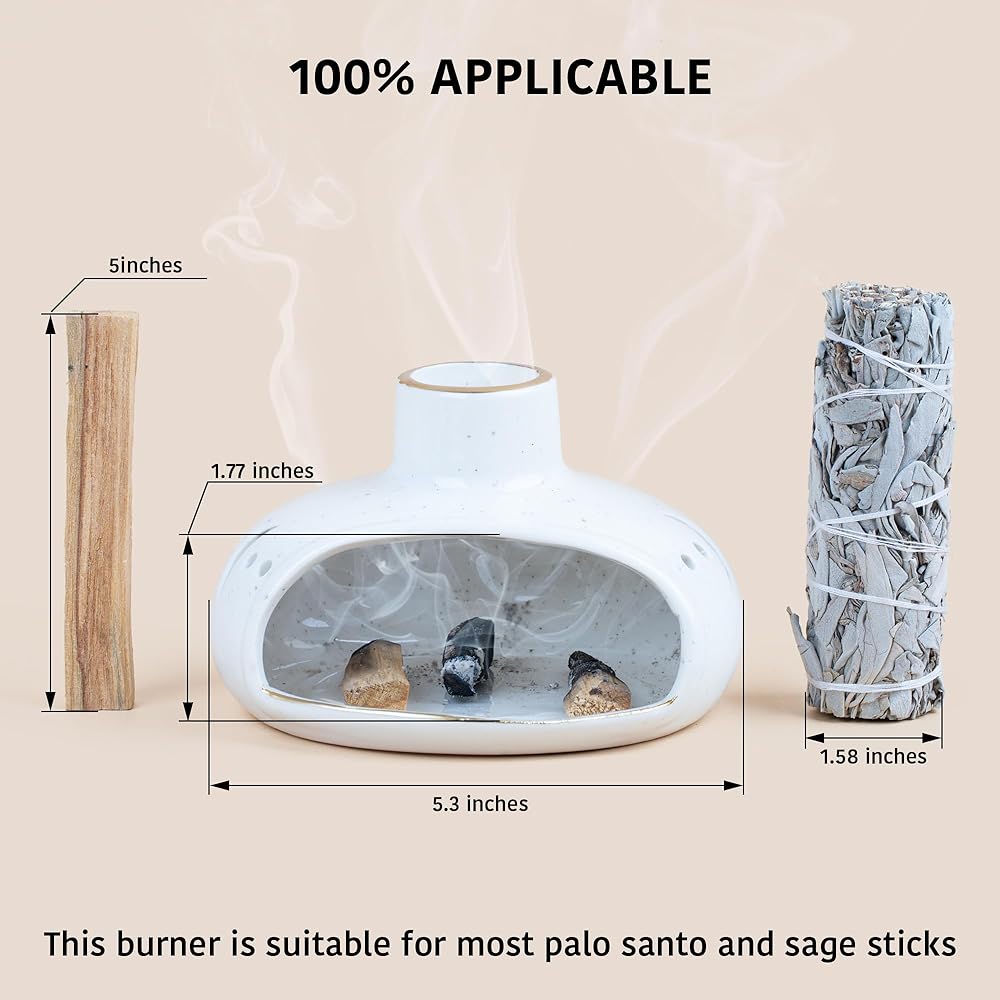 تصميم 3 في 1: وعاء التلطخ هذا كبير بما يكفي (5.3 بوصة) لاستيعاب أنواع مختلفة من البخور، بما في ذلك عصي بالو سانتو وعصي المريمية وعصي تلطخ الأرز ومخاريط البخور. يوفر المرونة والراحة لمختلف الممارسات العطرية.