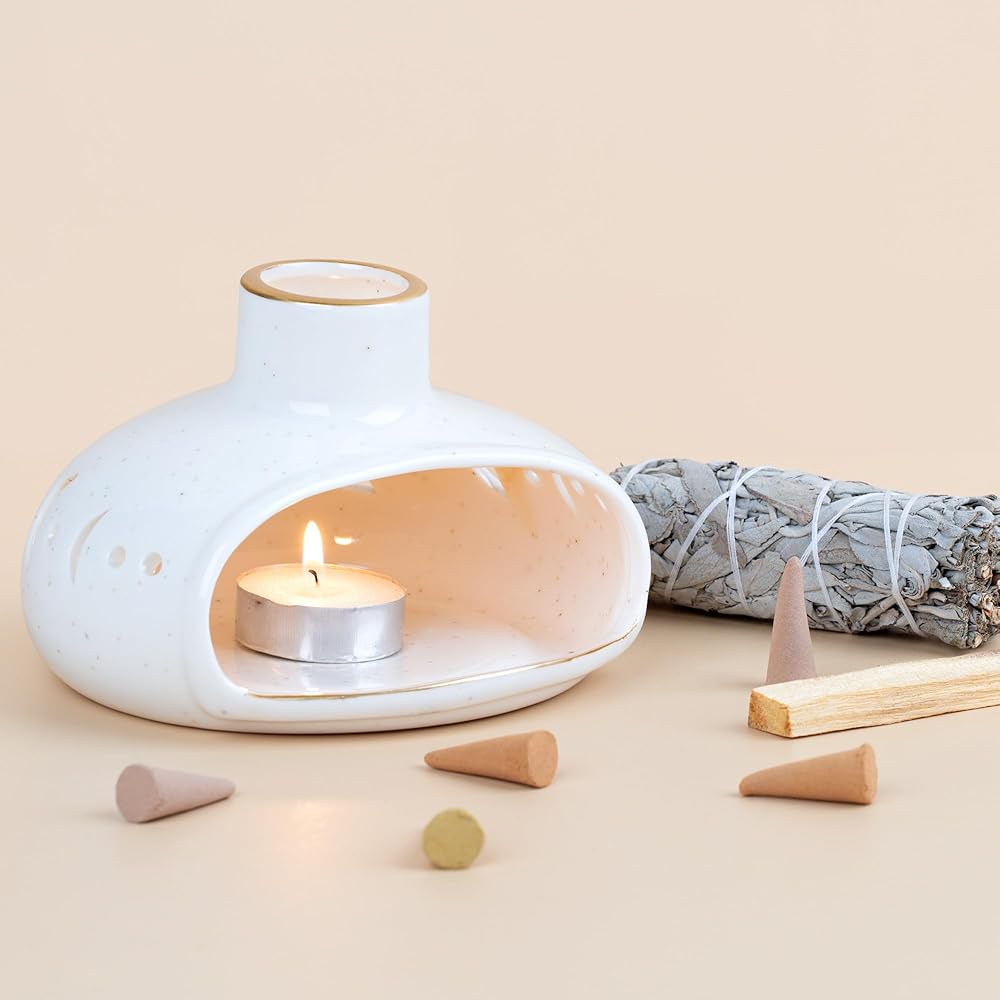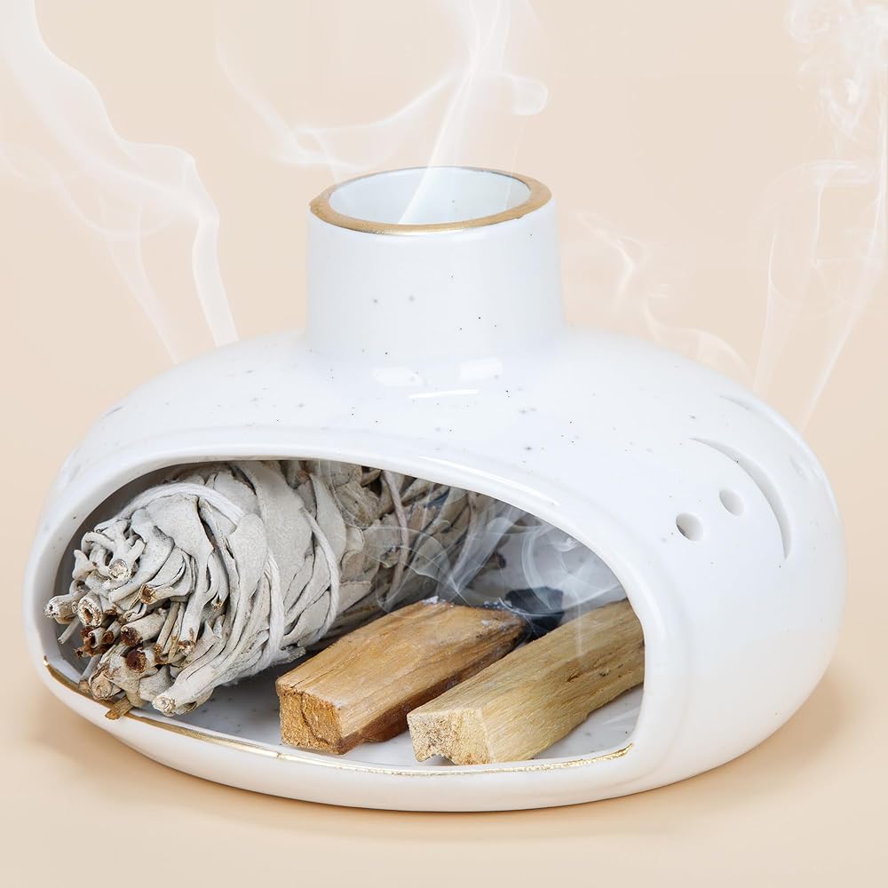 جودة عالية وصناعة يدوية: مصنوع من مادة السيراميك المتينة، هذا الموقد بالو سانتو مصنوع يدويًا بدقة، مما يضمن جودة ممتازة وتفاصيل دقيقة وطول العمر.