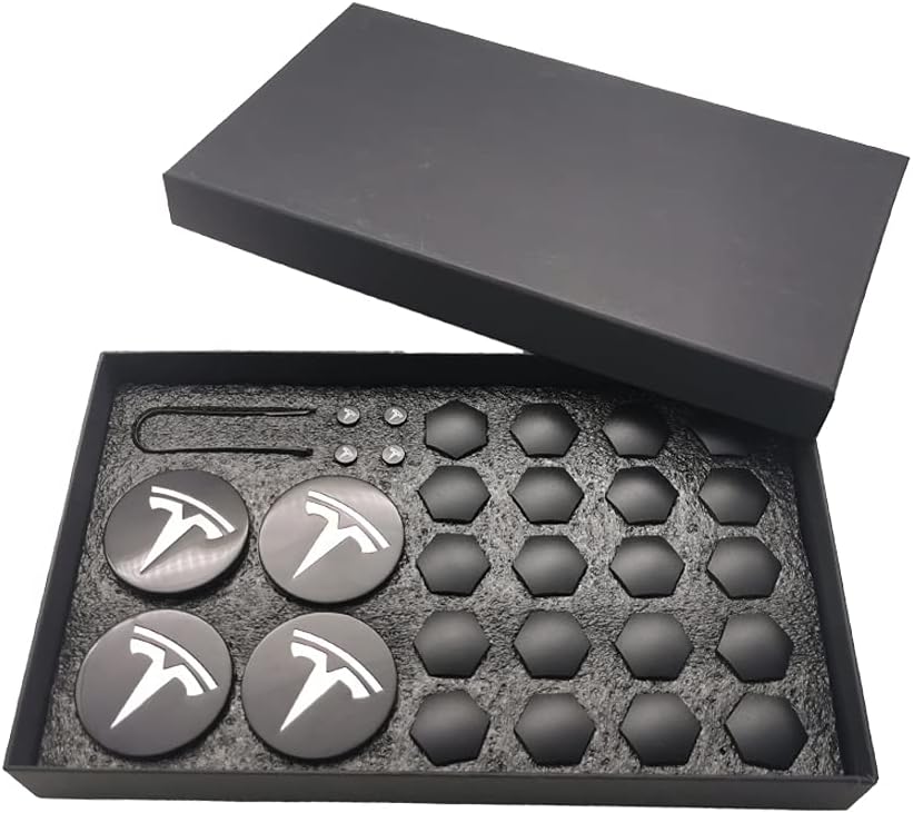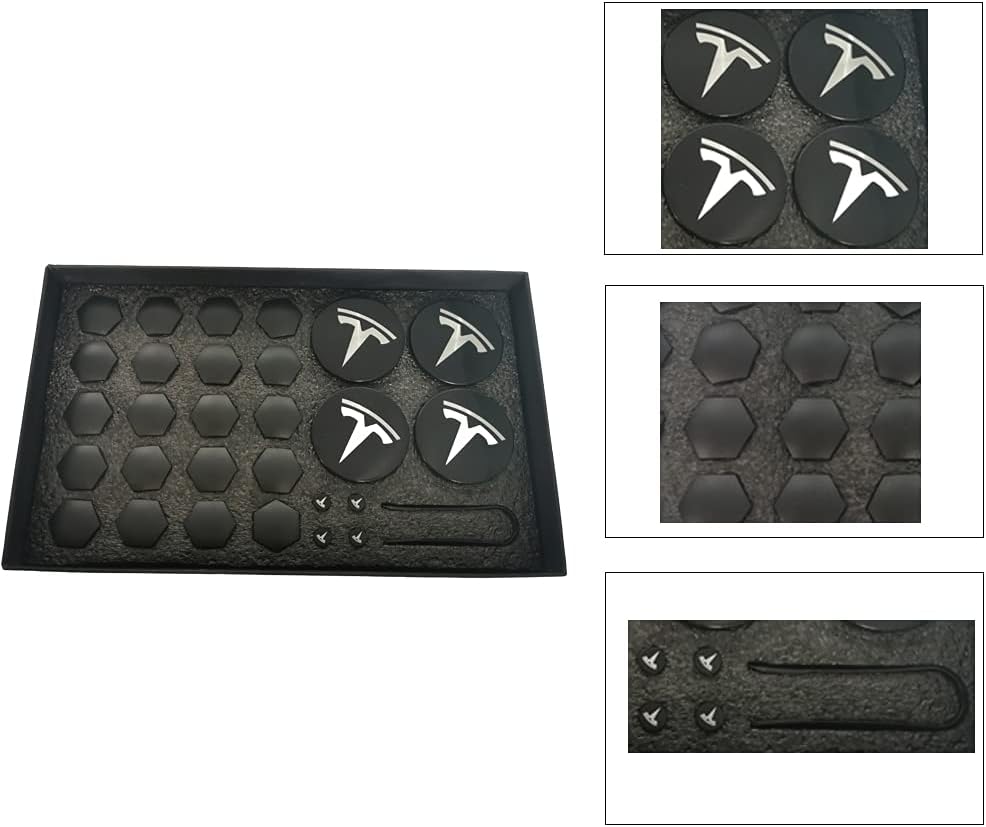 ✔【ملحقات كاملة】4 قطع غطاء مركزي، 20 غطاء صامولة، 4 أغطية صمام الإطارات، 1 مشبك متوفرة في مجموعة واحدة في عبوة مقاومة للصدمات تلبي احتياجات التثبيت الخاصة بك.