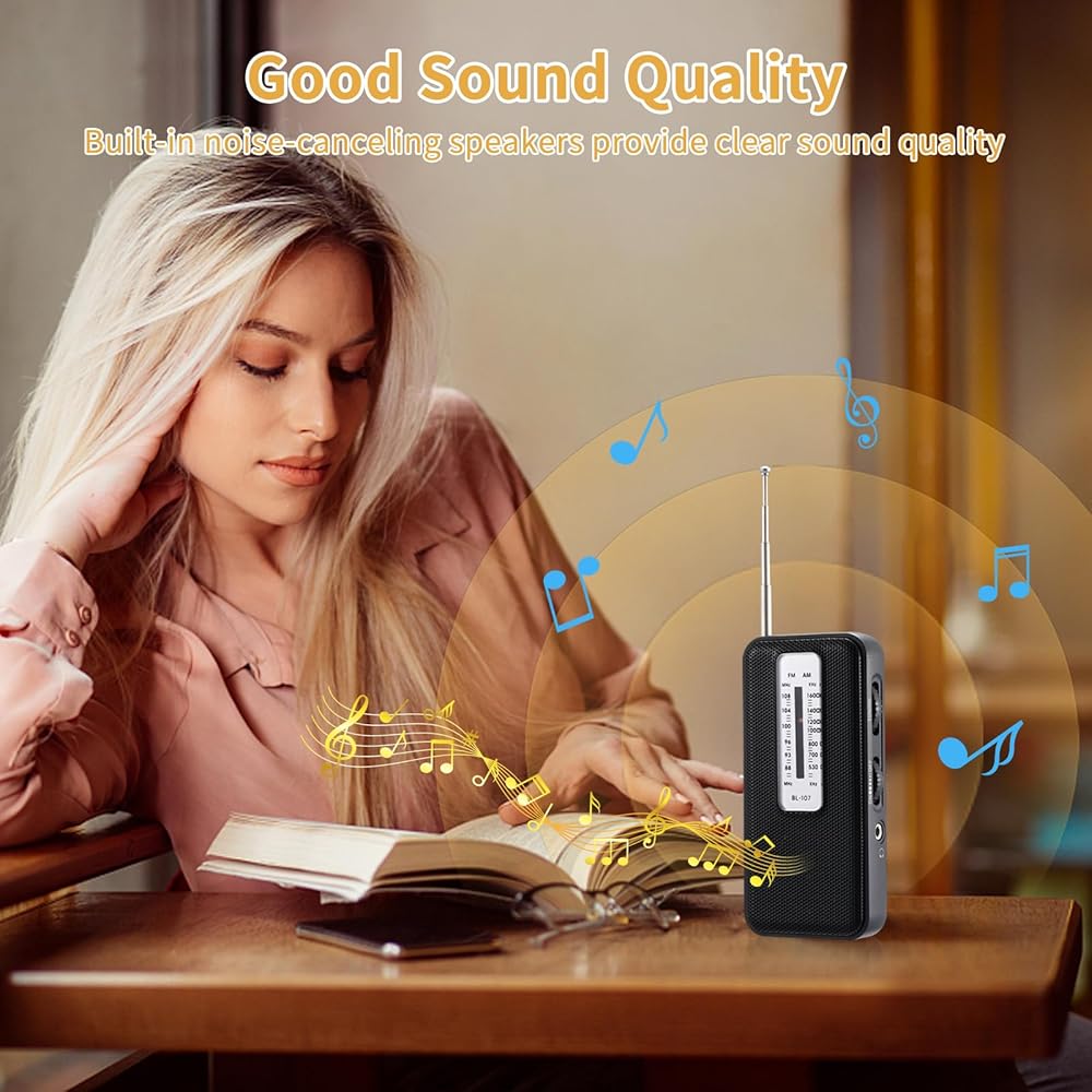 【مكبر صوت عالي ومقبس سماعة أذن ستيريو】يأتي الراديو الصغير مزودًا بمكبر صوت بقدرة 1.5 واط يجعل الصوت واضحًا تمامًا. وهذا يعني أنه يمكنك الاستمتاع بالموسيقى والأحاديث والأخبار الرياضية عالية الجودة. بالإضافة إلى ذلك، يعمل هذا الراديو الصغير بشكل مثالي مع مقبس سماعة الرأس مقاس 3.5 ملم (سماعة الرأس متضمنة). قم بتوصيل سماعات الرأس واستمتع بوقتك الخاص، مما يسمح للراديو بإعادتك إلى العصور القديمة.