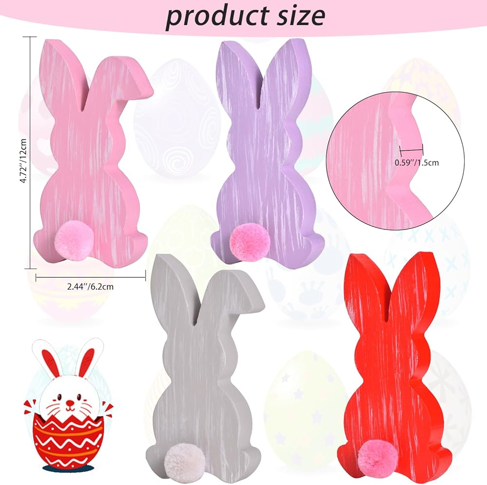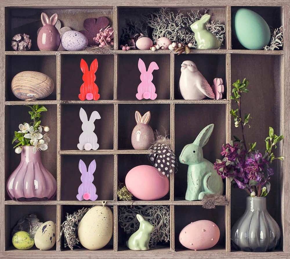 جودة فاخرة وطول العمر: مصنوعة من خشب عالي الجودة، مجموعة مكعبات تزيين أرنب عيد الفصح الخاصة بنا تضمن تأثيرًا دائمًا. مع تصميمات وأبعاد ساحرة تبلغ 2.44 بوصة × 4.72 بوصة × 0.59 بوصة، فهي مثالية للديكور الداخلي متعدد الاستخدامات.