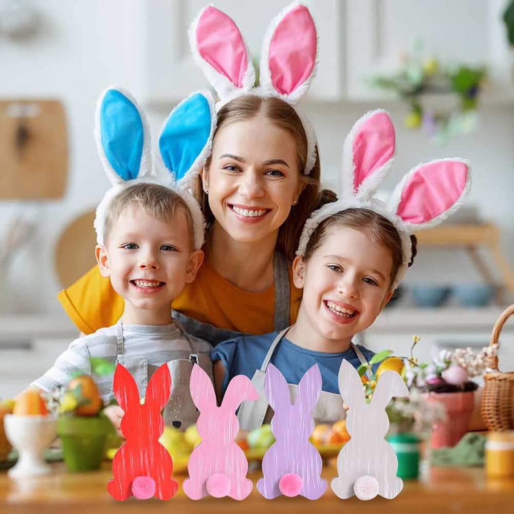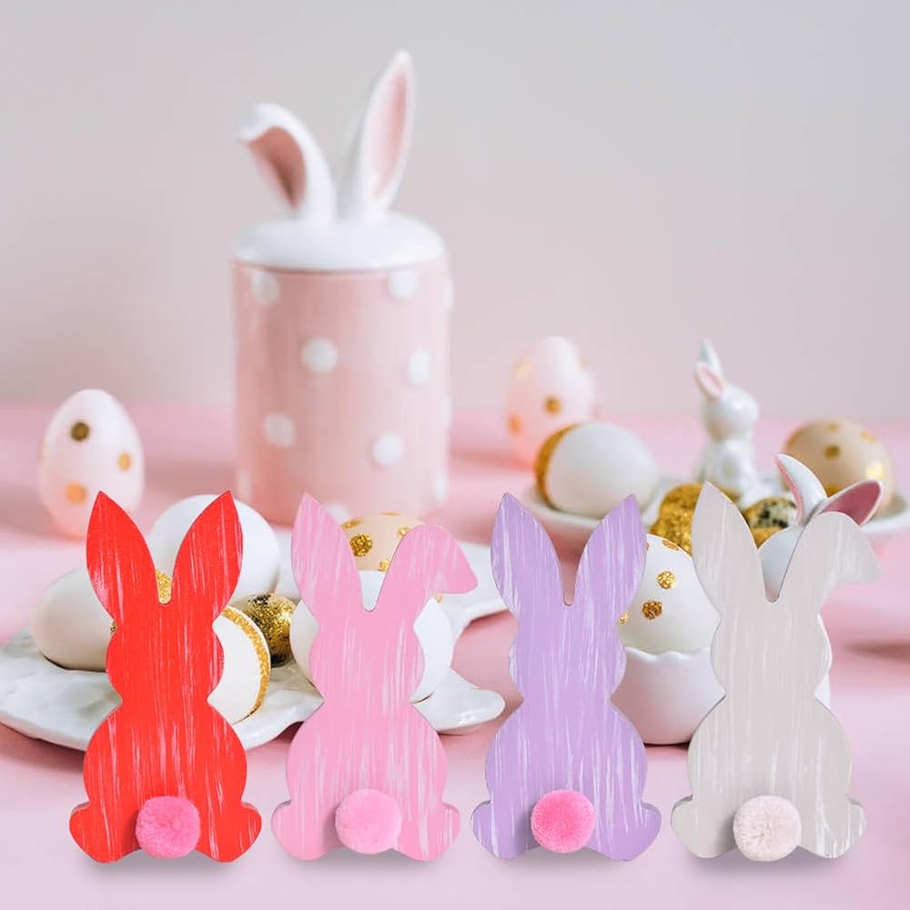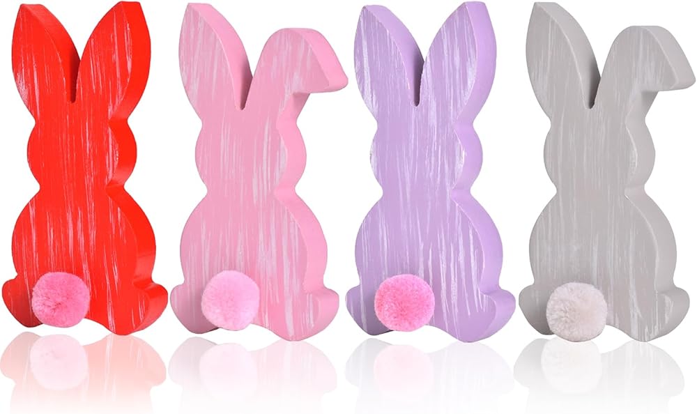 مجموعة غريبة مكونة من أربعة: قم بتحويل المساحة الخاصة بك مع مجموعة مكعبات الديكور الخشبية على شكل أرنب عيد الفصح! تتضمن هذه المجموعة النابضة بالحياة أربعة أرانب ريفية باللون (الأحمر، الوردي، الأرجواني، الرمادي) أو (الأخضر، الأزرق، الأصفر، الأبيض). مصنوع من خشب عالي الجودة، كل أرنب له تصميم فريد، من نقاط البولكا إلى النجوم.