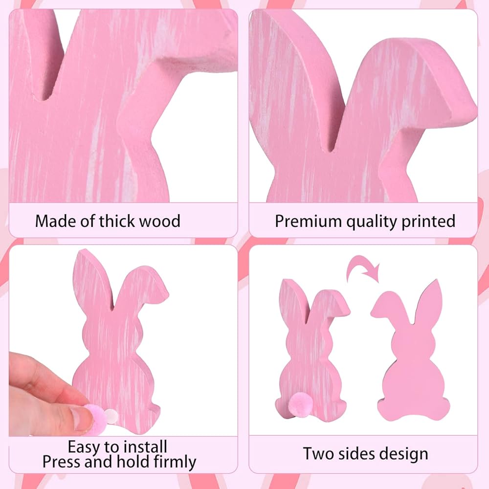 اجمع كما يحلو لك: استمتع بمزيج مجاني مع مجموعة ديكورات سطح الطاولة الخشبية المكونة من 4 قطع على شكل أرنب عيد الفصح. يمكنك وضع هذه الأرانب الجميلة معًا لإنشاء مجموعة ديكور لطيفة لعيد الفصح، أو بشكل منفصل لإضاءة أي مكان. خطوط دقيقة تحاكي حبيبات الخشب للحصول على تفاصيل بسيطة وخاصة. مثالية لأسطح الطاولات، أو الصينية ذات الطبقات، أو الأرفف، أو المفارش، فهذه الأرانب تمثل هدية عيد الفصح المبهجة لأي مناسبة.