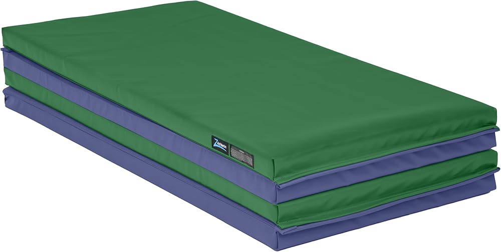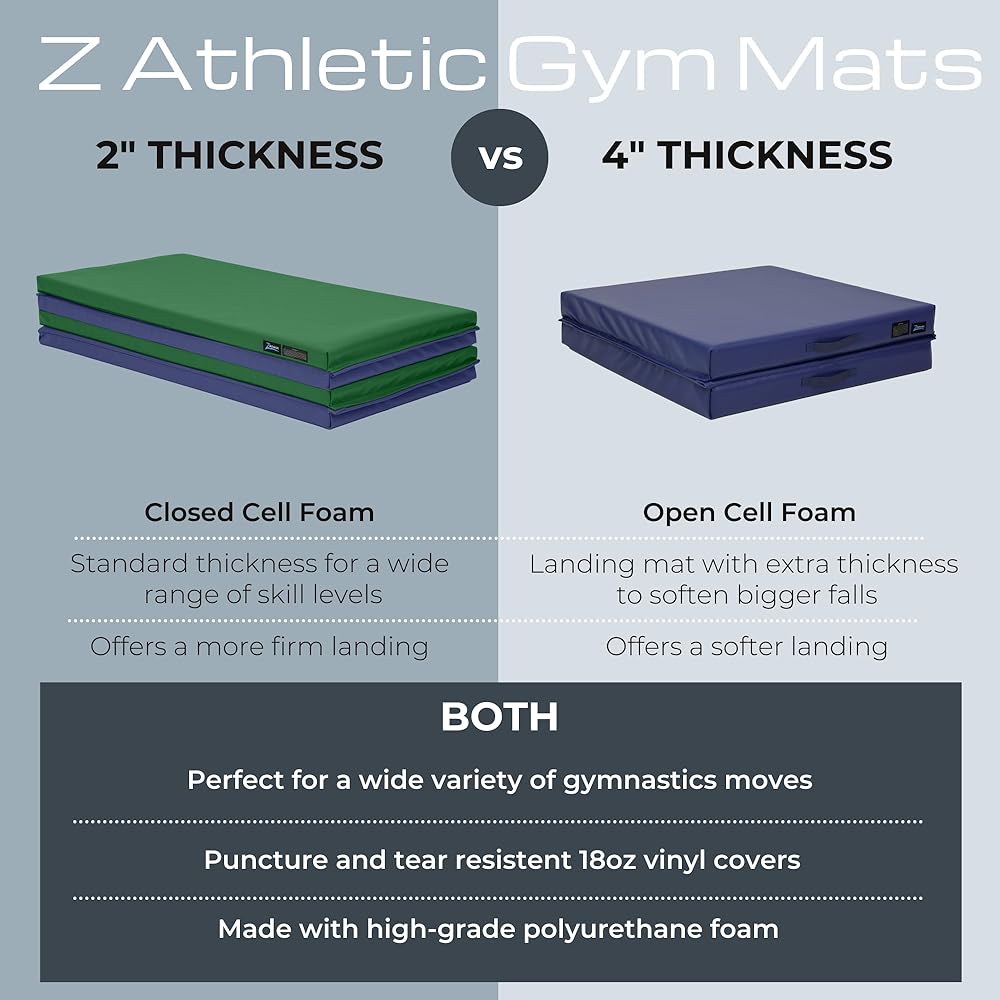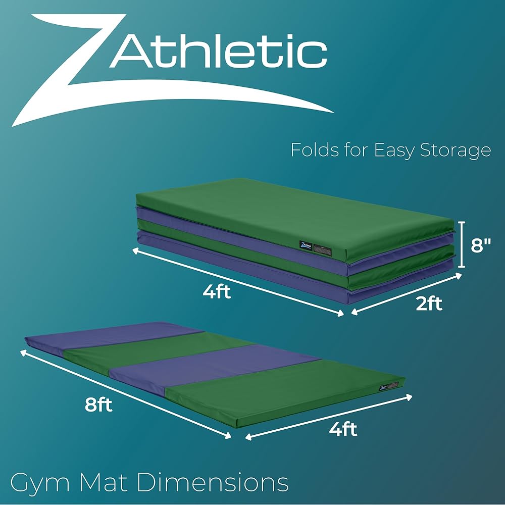 Built with quality materials and made to withstand repeated use, our Z Athletic Folding Mats for gymnastics are perfect for a wide variety of activities that require floor padding! Made of high-density cross-linked polyethylene foam covered in 18-oz. vinyl, our tumbling mat is soft, stable, and easy to clean thanks to its non-porous vinyl surface that resists punctures. Hook-and-loop connections on all 4 sides even allow for side-to-side and end-to-end connections to other mats. Our gymnastics mats for tumbling are perfect for use as thick yoga mats, stretching equipment, martial arts training equipment, general workout mats, and much more.
