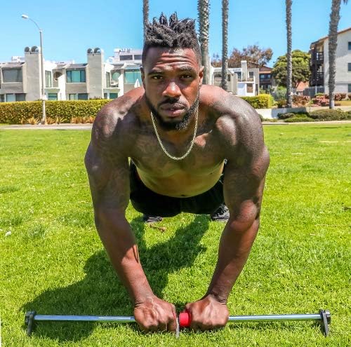 Portable and efficient workouts in 5 minutes. More peak muscle activation than bench press. @WorkoutsWithBeckfordBar Instagram
