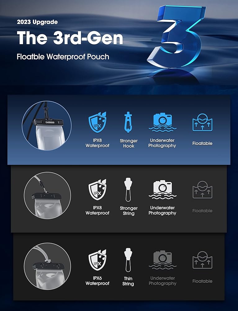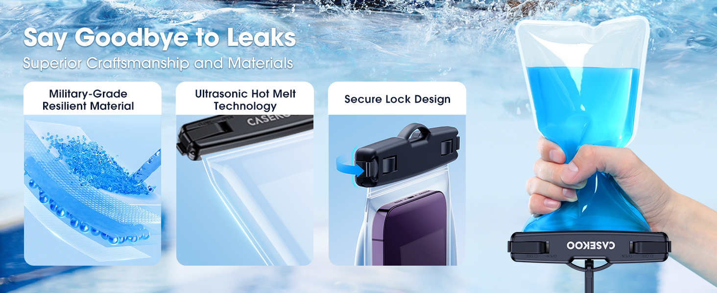 . 𝘆】السبب وراء حاجتك إلى حقيبة جافة مقاومة للماء ليس فقط للحماية ولكن لالتقاط الصور! حقيبة CASEKOO المقاومة للماء للهاتف الخلوي مصنوعة من مواد ألمانية عالية الشفافية مع نفاذية الضوء تصل إلى 99.99%. يحافظ التصميم الجانبي المرن على أزرار اللمس الحساسة سهلة الضغط كالشعور الأصلي.