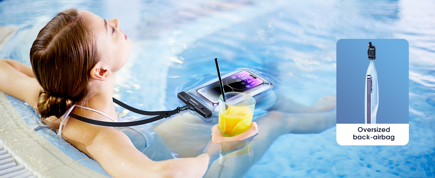 【𝗪𝗘 𝗙𝗟𝗢𝗔𝗧! مع وسادة الهواء المدمجة للترقية، فإنها تطفو بشكل طبيعي دون أن تغوص إلى الأسفل، كما تعمل حافظة الهاتف العائمة المقاومة للماء على تحلل الضغط على الرقبة بشكل فعال. ارتداء طويل الأمد دون تمديد الرقبة، والمزيد من الألعاب الجامحة، واللعب في الماء. كما أن جراب الهاتف الخلوي العائم المقاوم للماء من CASEKOO يطفو على الماء بحيث يمكنك الاستمتاع به حول الماء مع العلم أن مقتنياتك الثمينة آمنة.