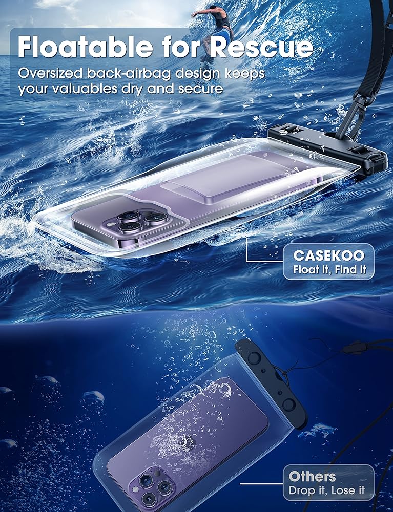 【𝗪𝗘 𝗙𝗟𝗢𝗔𝗧! 𝗟𝗶𝗳𝗲 𝗦𝗮𝘃𝗲𝗿】مع جراب هاتف CASEKOO المقاوم للماء، وهو مفيد جدًا للعثور على هاتفك بعد فصله عن الحبل فجأة. خذ حافظتك تحت الماء وأنت مرتاح البال بمعرفة أن حافظتك لن تغوص إلى الأسفل إذا انزلقت من يدك. لا مزيد من التوتر بشأن غرق هاتفك في قاع المحيط.