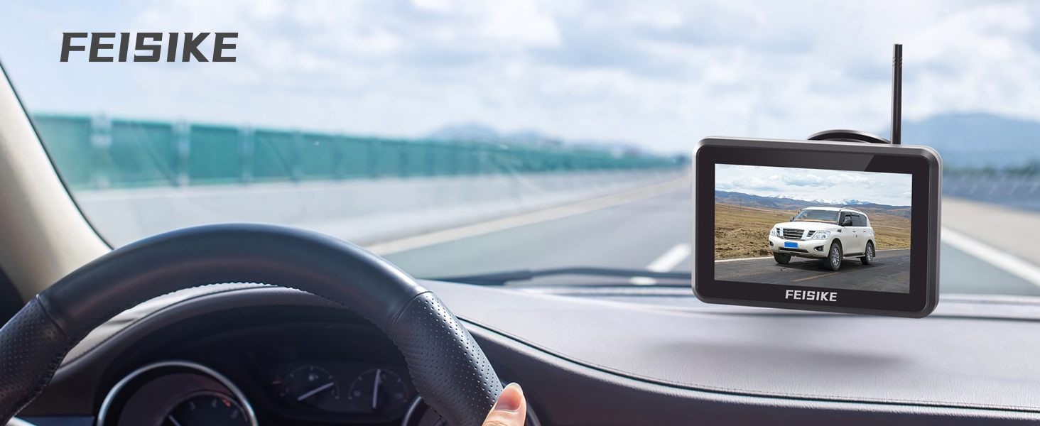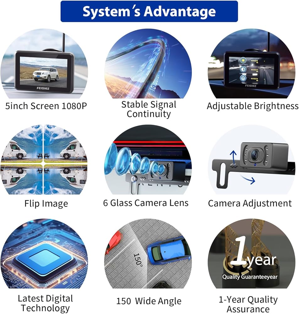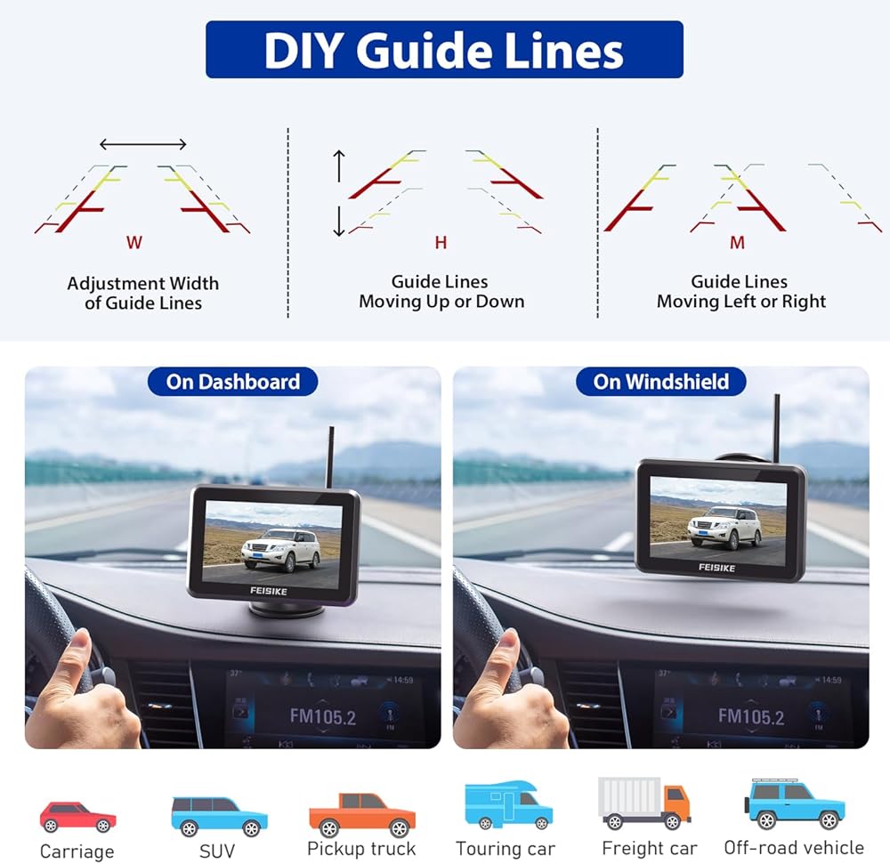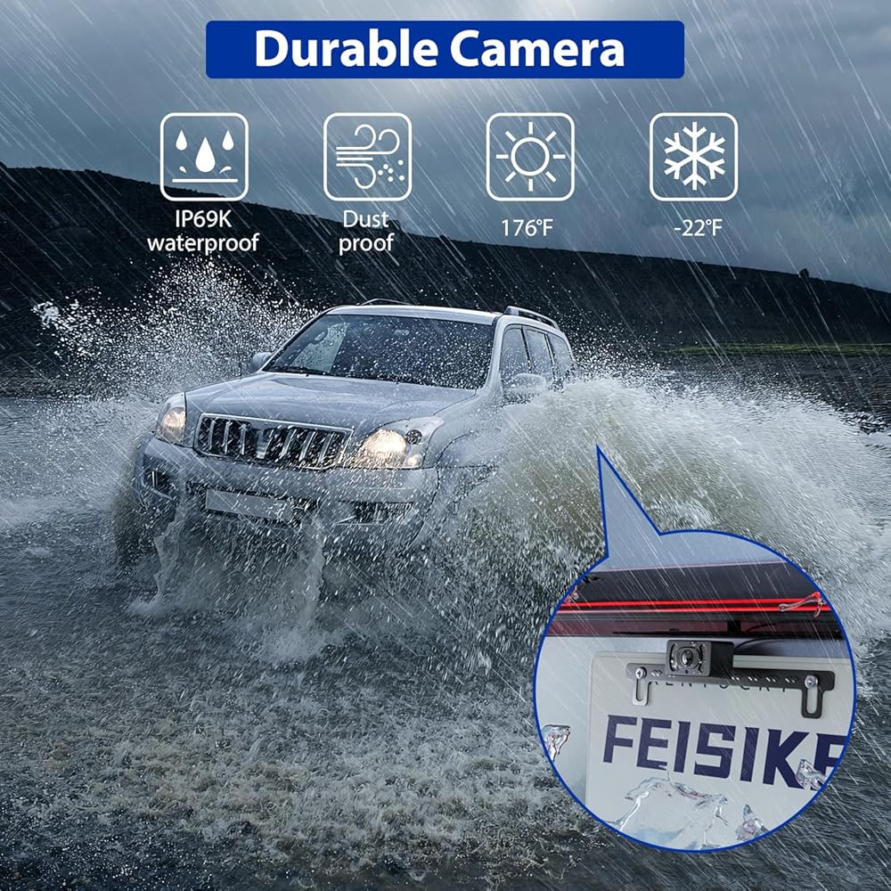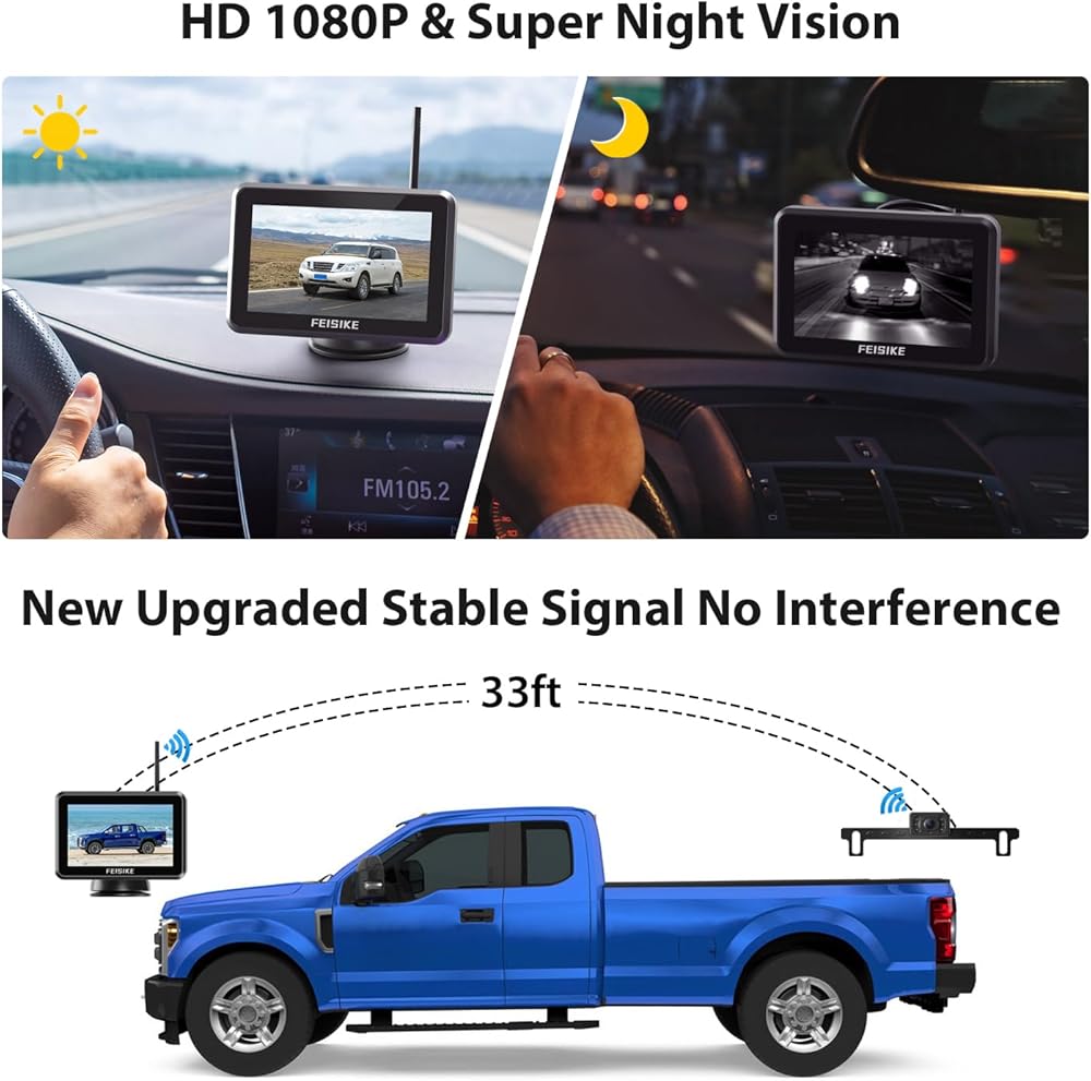 كاميرا احتياطية لاسلكية من FEISIKE مع شاشة 5 بوصات، إشارة ثابتة سهلة الإعداد HD 1080P كاميرا احتياطية للمركبة مع IP69 مقاومة للماء ورؤية ليلية فائقة، كاميرا رؤية خلفية بلوتوث للسيارات والشاحنات الصغيرة