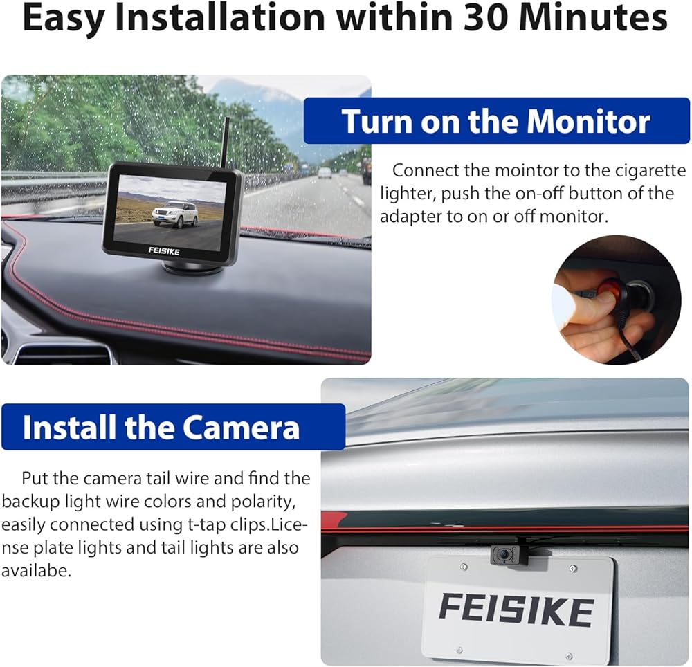 【تصميم لاسلكي لسهولة التركيب بنفسك 】تقوم الكاميرا الاحتياطية اللاسلكية للسيارة بتوصيل كاميرا احتياطية عن طريق جهاز إرسال لاسلكي. خطوتين فقط: 1. قم بتثبيت الشاشة؛ 2. قم بتوصيل كاميرا الرؤية الخلفية بتشغيل الضوء أو كشافات خلفية للسيارة-أبيض وأنت على ما يرام. لا مزيد من كابلات الفيديو الطويلة المعقدة من الشاشة إلى الكاميرا الخلفية. جعل كل الأمور أسهل بكثير.