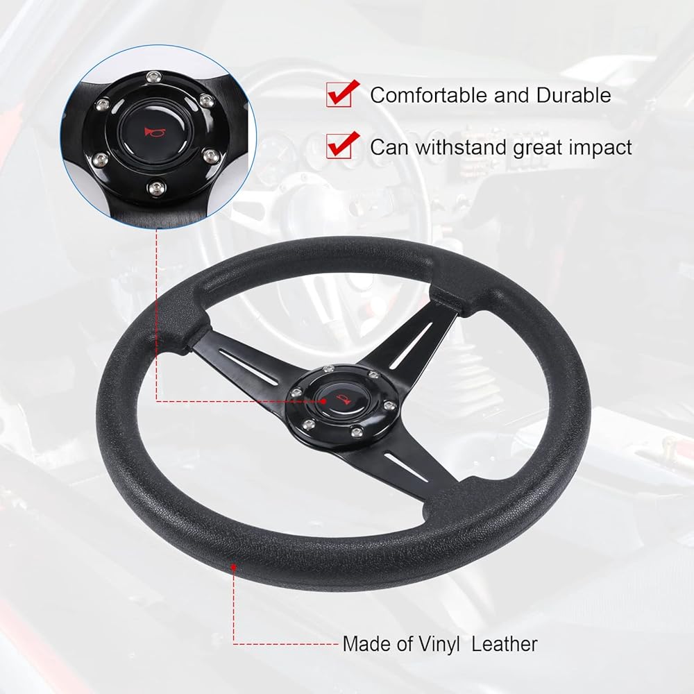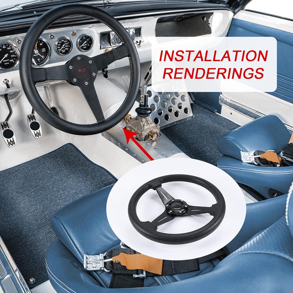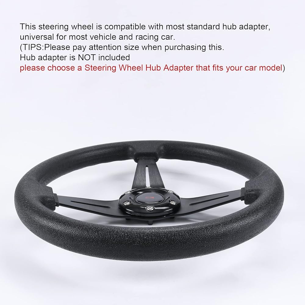 Application:This steering wheel is compatible with most standard hub adapter, universal for most vehicle, racing car,game console.(TIPS: Hub adapter is NOT included, Before installation,please choose a Steering Wheel Hub Adapter that fits your car model!)