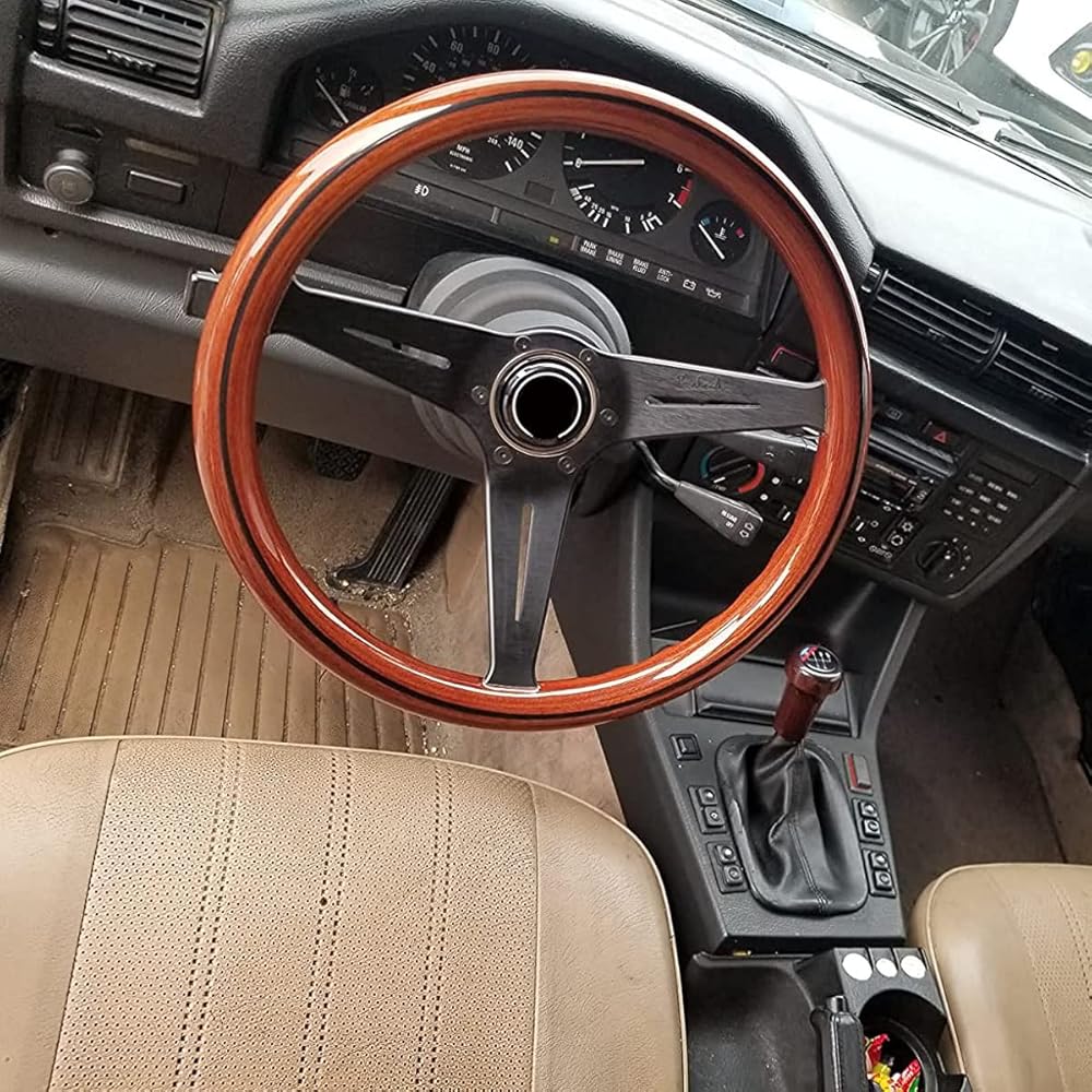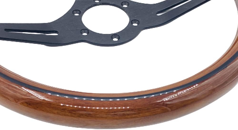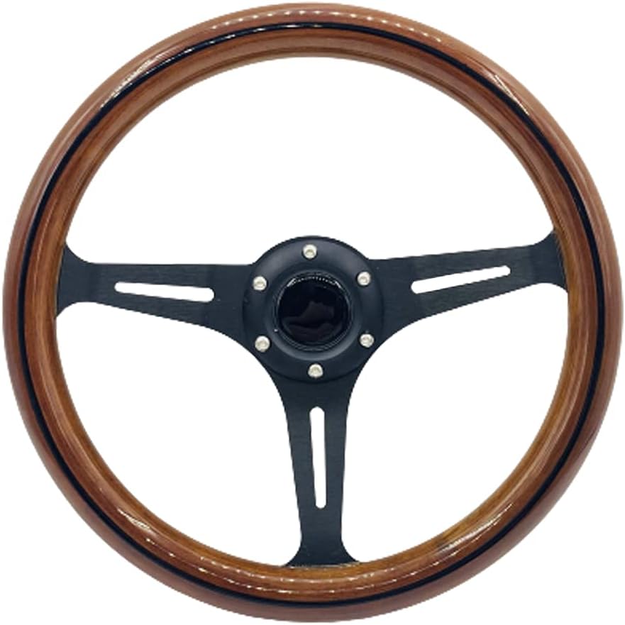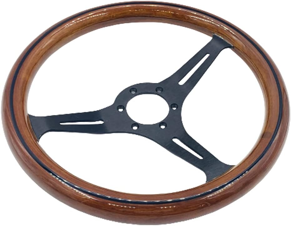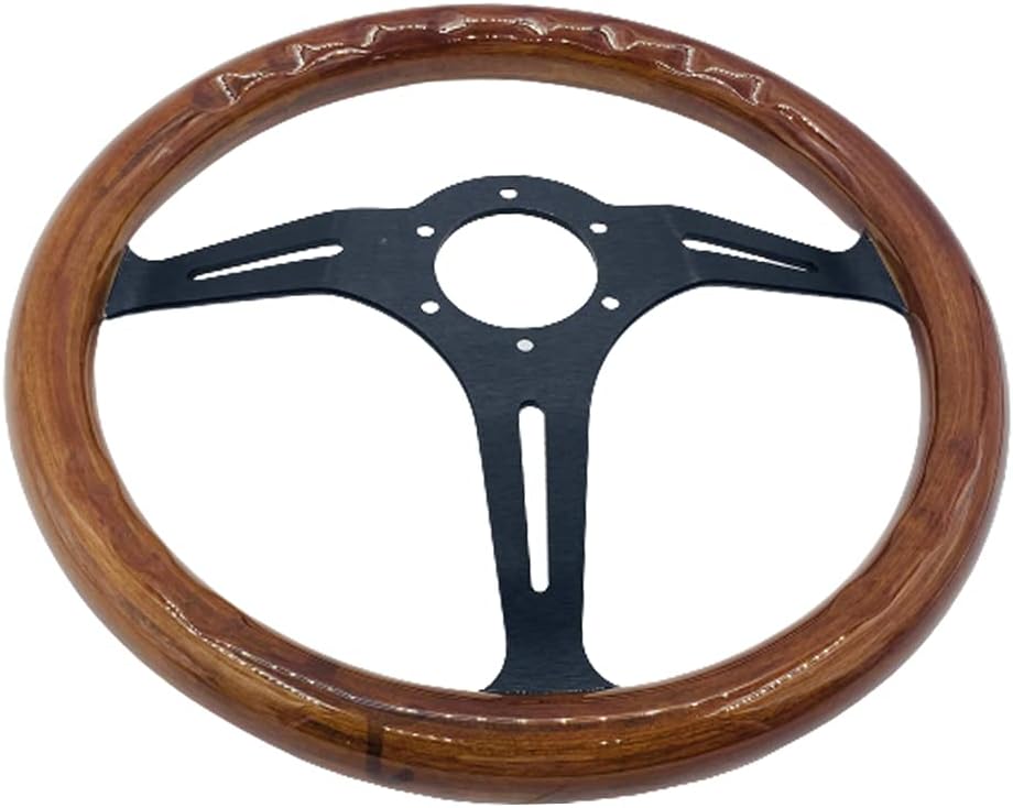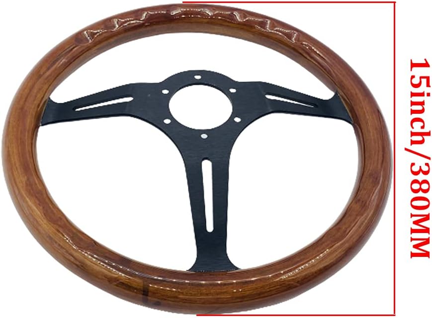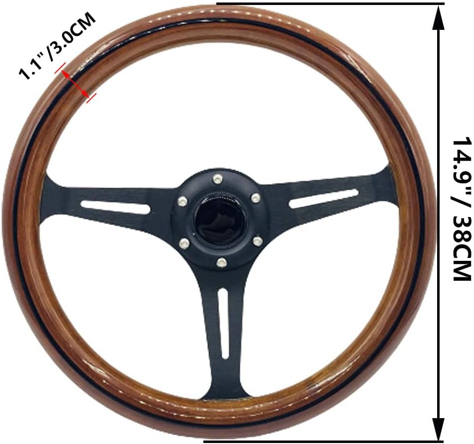 - عجلة قيادة مقاس 15 بوصة من الخشب المحبب تناسب السيارات الكلاسيكية المزودة بمكبرات صوت من الفولاذ المقاوم للصدأ المصقول