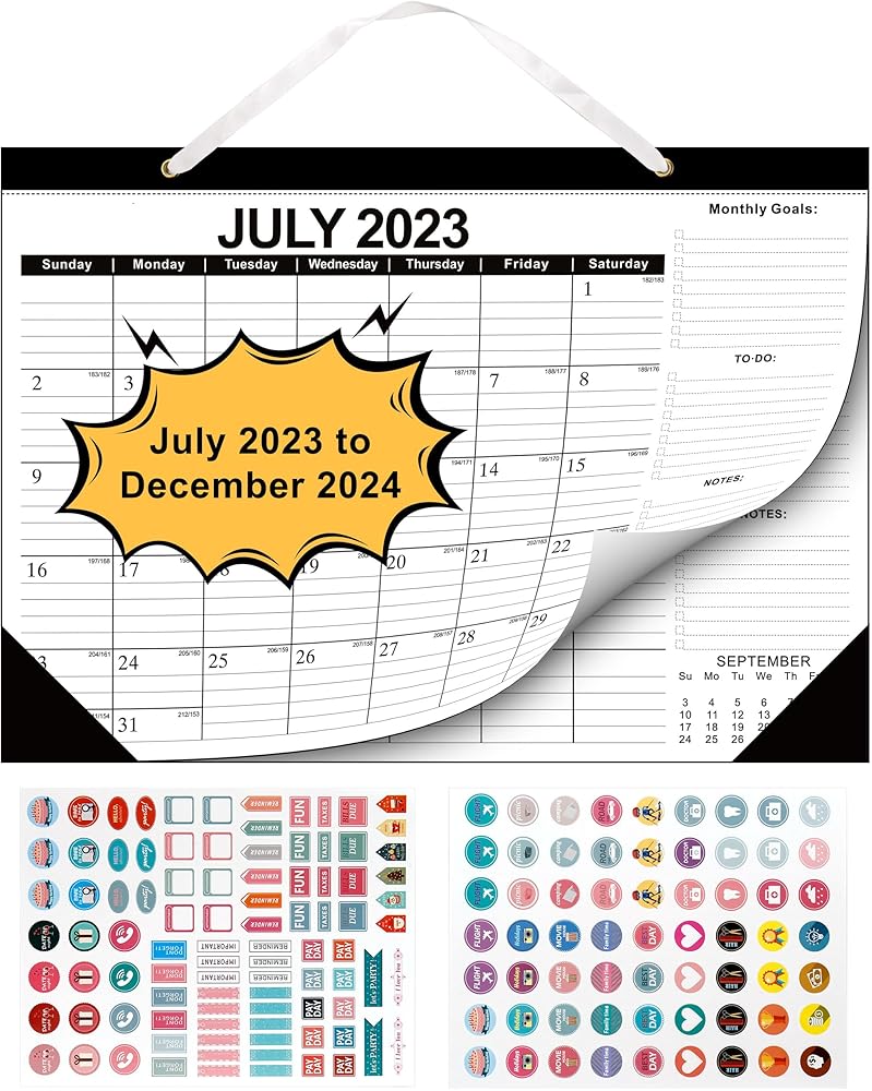 تقويم حائط 18 شهرًا - من يوليو 2023 - ديسمبر 2024، مخطط شهري 2023-24 تقويمات مكتبية مقاس 17 بوصة × 12 بوصة، تقويم كبير مع زاوية للتخطيط والتنظيم للمنزل والمكتب