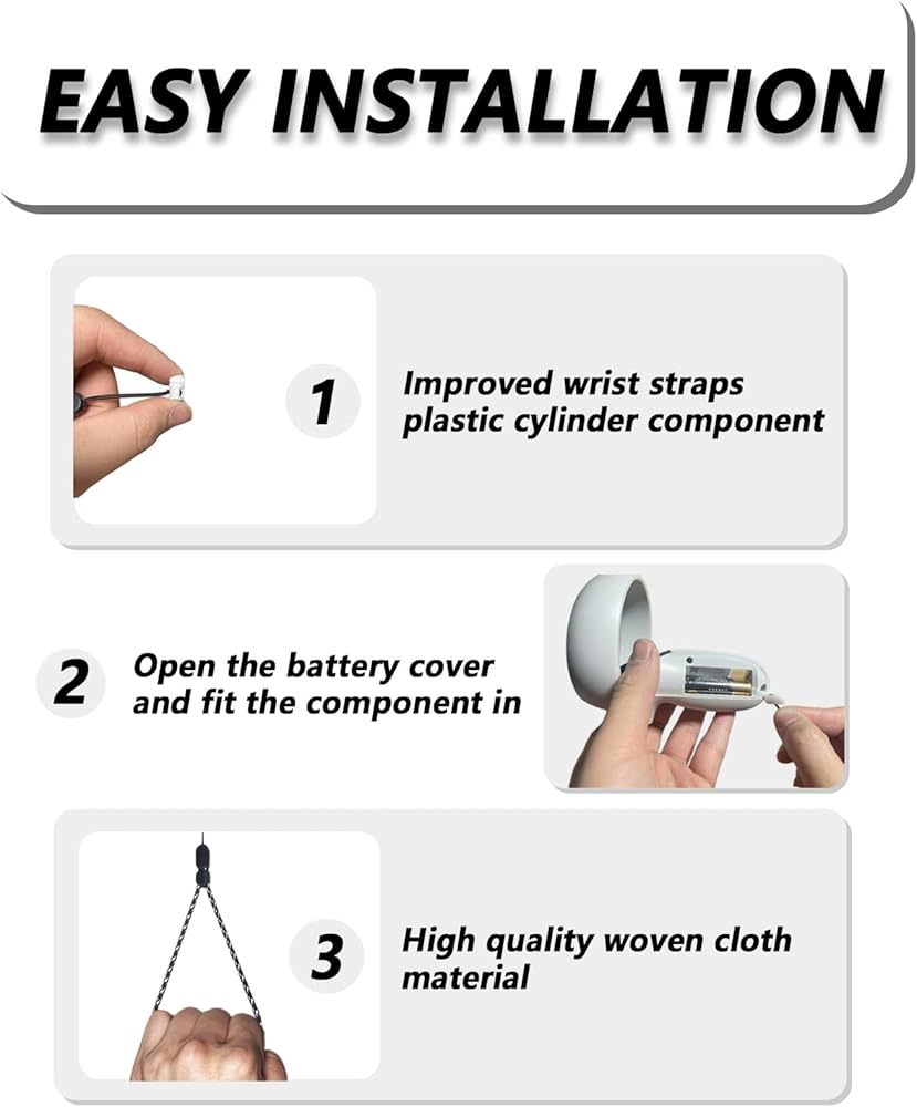 🌞Easy to install: Simply push open the battery slot of the grip controller, insert the improved wristband resin cylinder part into the bottom slot, tidy up the cord, close the cover and enjoy your VR game.