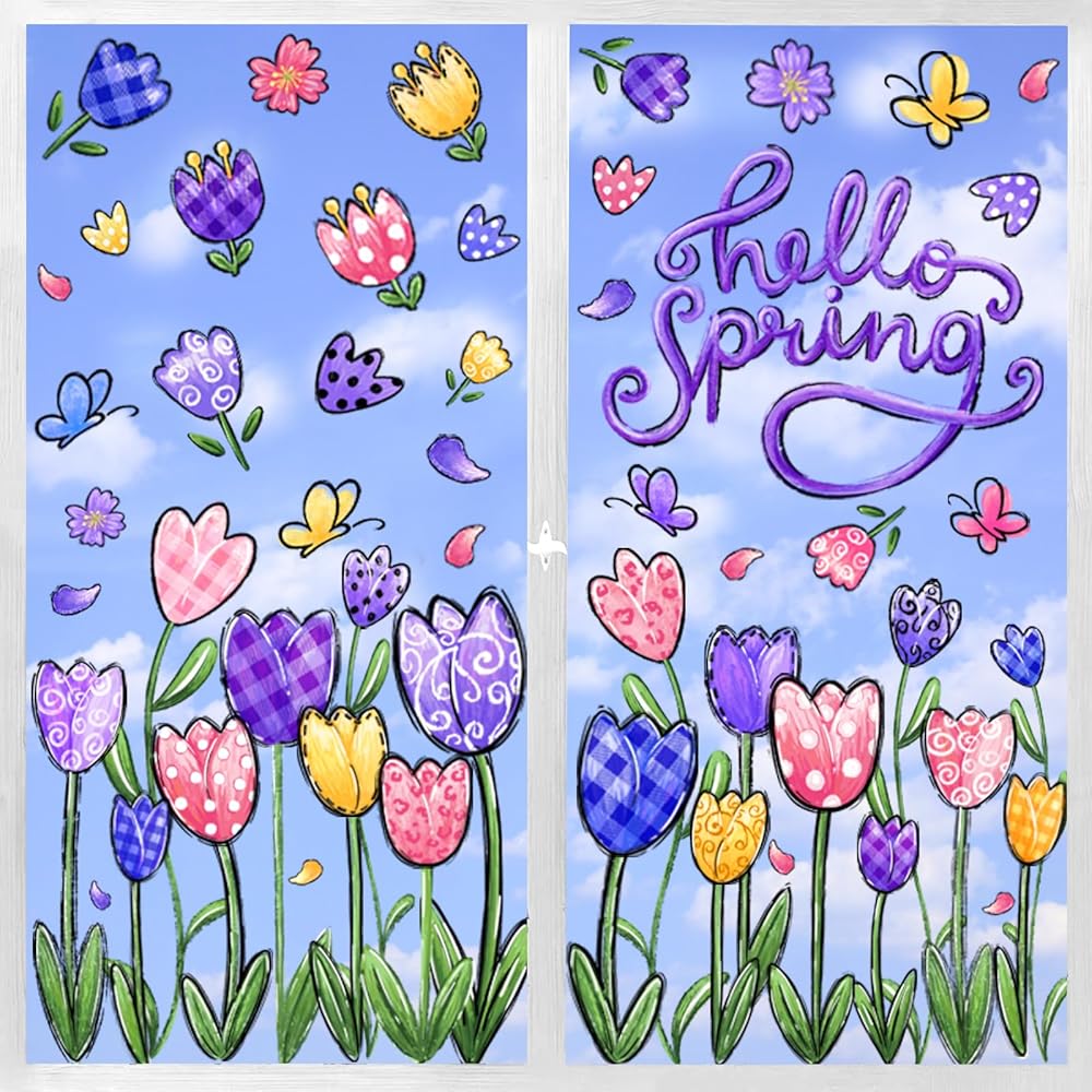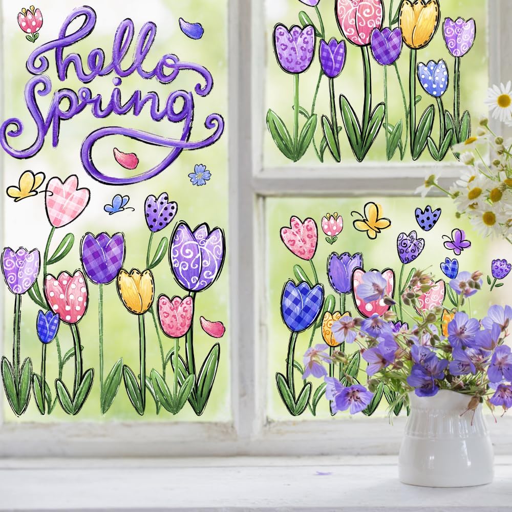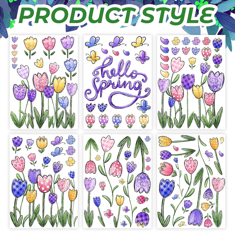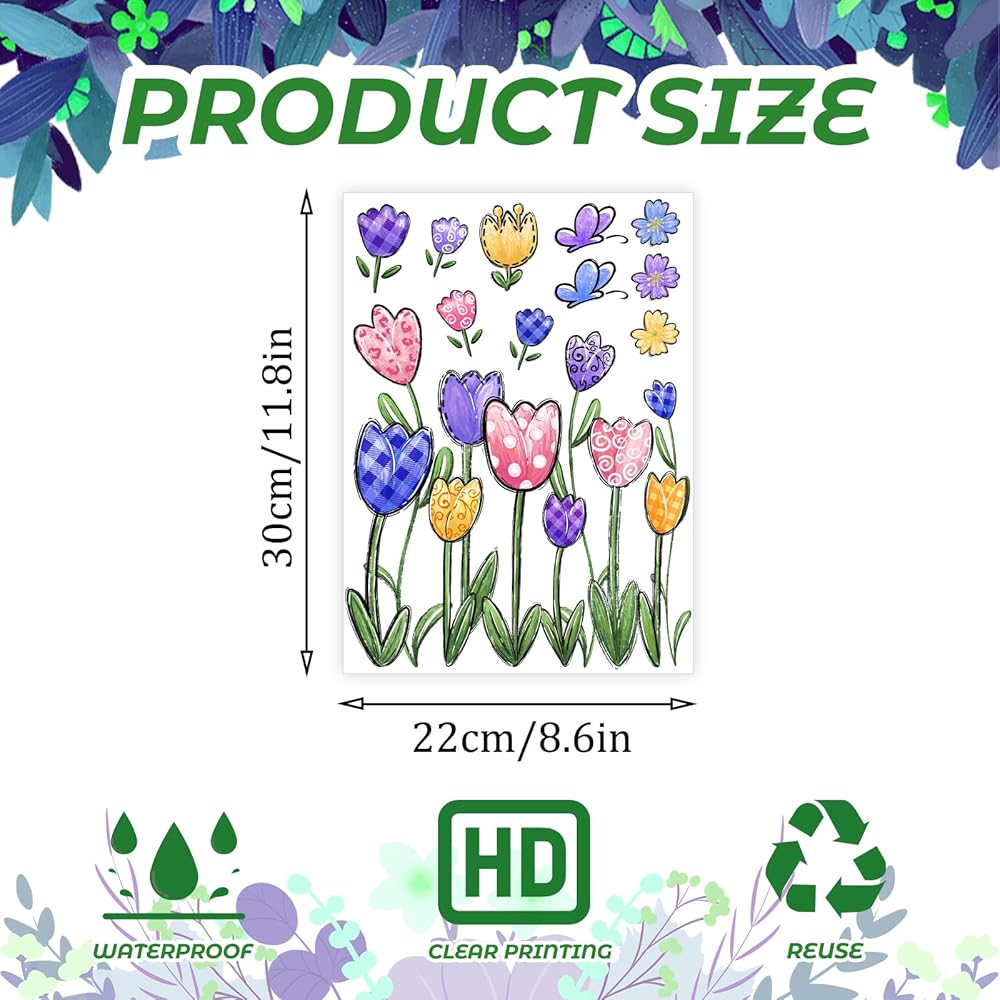 【What's included】6 Sheets Spring window decals will be in your package. Each sheet Spring window stickers is 12 x 8.5 inches (L x W ) . Variety of Tulip and Butterfly . Enough to meet your diverse needs. It makes people truly feel the joy of Spring.