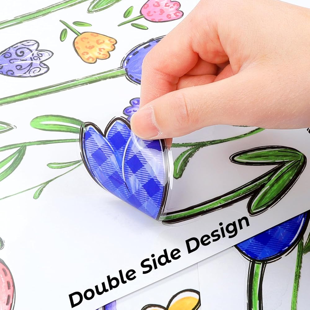 【Wide Application】They can be applied to any smooth surface. These Spring Summer home decorations are a great choice when you use them for glass windows to decorate any room in office, school, church, home, Shop window, Coffee shop, and it can be stuck to mirrors, cars window, etc. Spring clings for glass windows would create a strong Spring atmosphere.