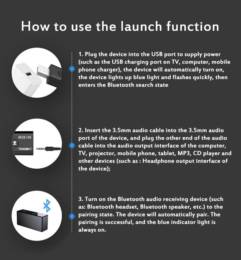 Transmission mode (suitable for sending computer/TV/radio/MP3 audio to Bluetooth headset/stereo)