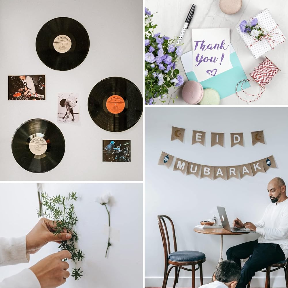 Our reusable multipurpose tapes are easy to stick onto various surfaces such as paper, plastic, wood, leather, cloth, and glass. You can even use it for crafting, designing handmade products, hanging murals, or even pasting Christmas and other holiday gift packaging. The round putty is perfect for creating envelopes and making crafts.