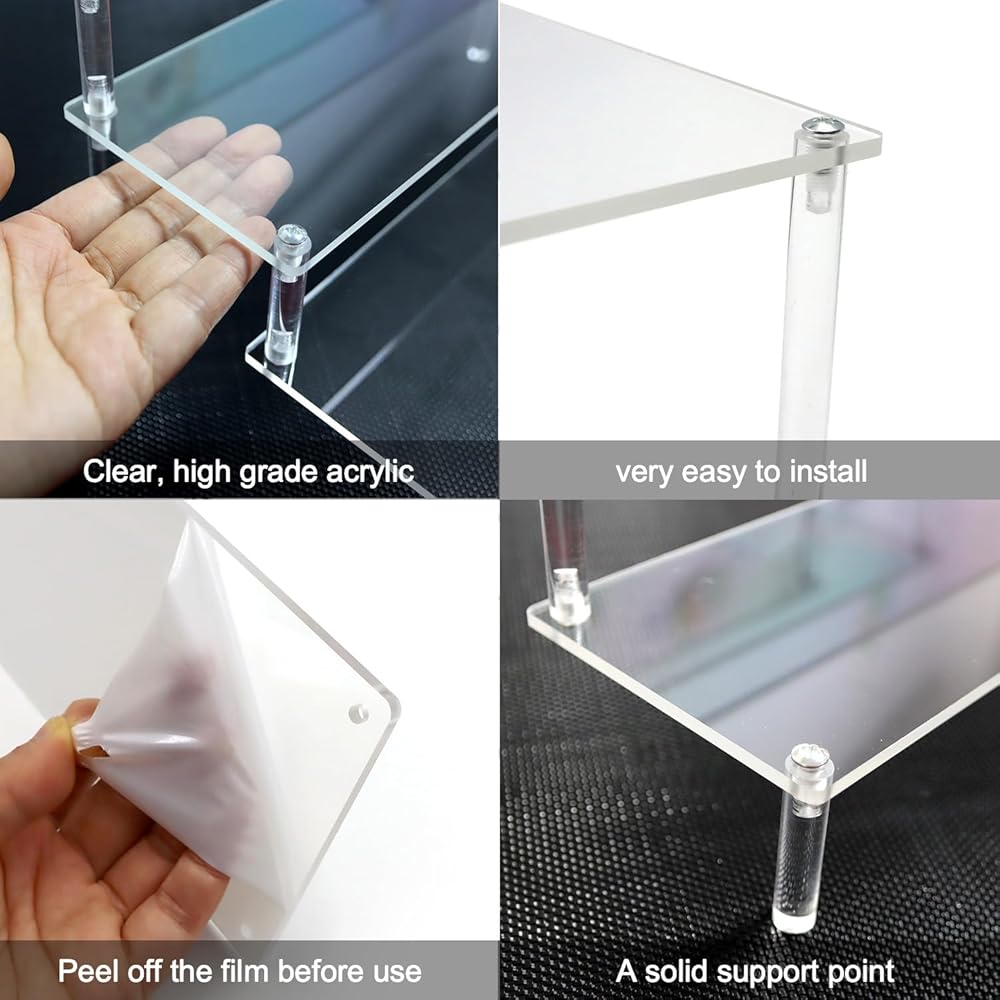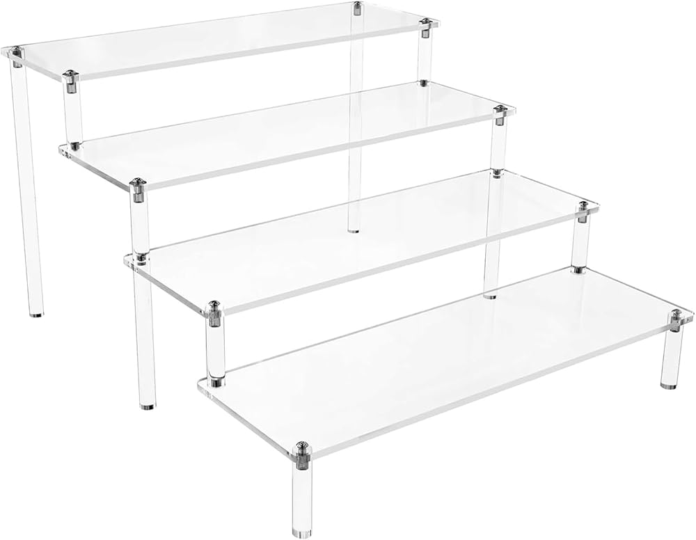 Clear 4 tier Acrylic Shelf Risers for Display is worth having, it can help you keep your things in order and display, saves you time.