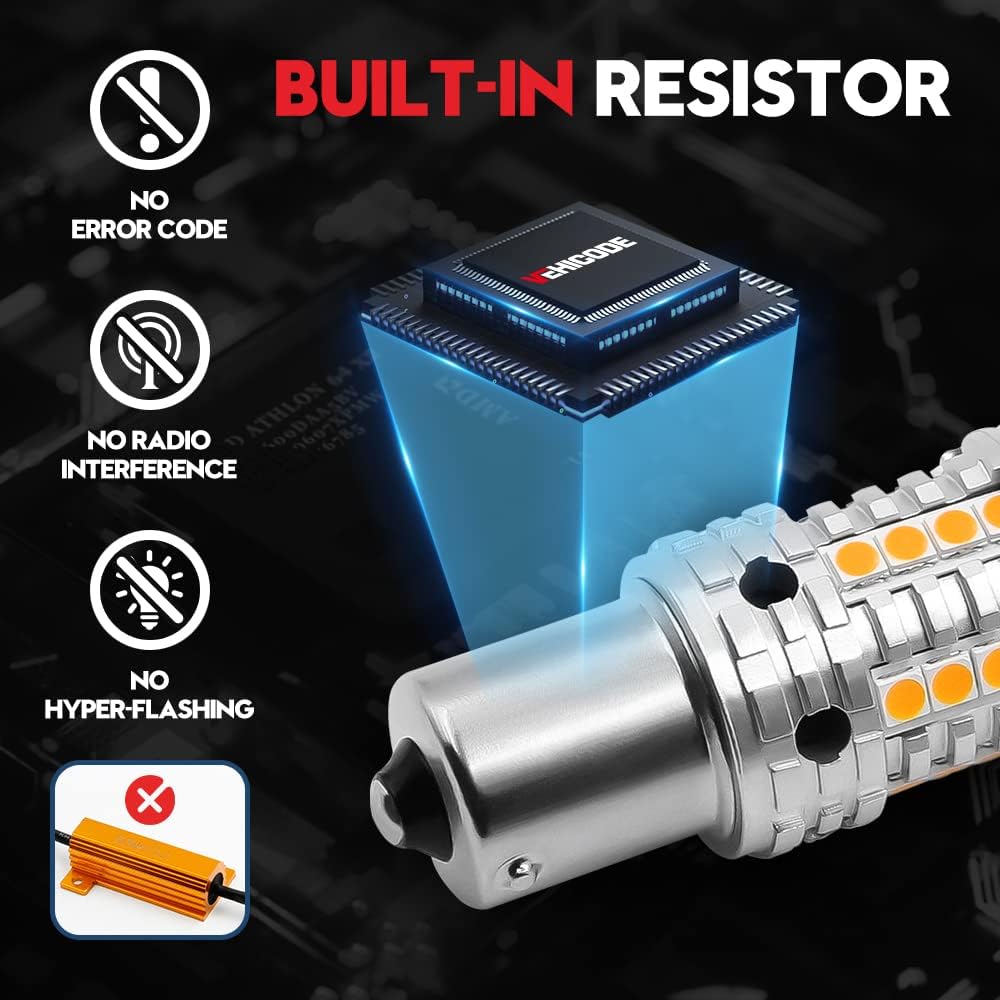 VEHICODE 7507 PY21W LED لمبة العنبر CANBus خالية من الأخطاء ولا يوجد فلاش فرط 12496 BAU15S ضوء إشارة الانعطاف مع مقاوم مدمج بديل فائق السطوع لسيارة الدراجات النارية (عبوتان)