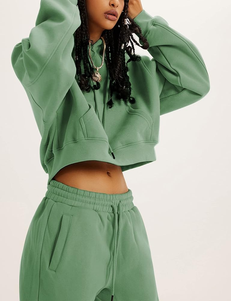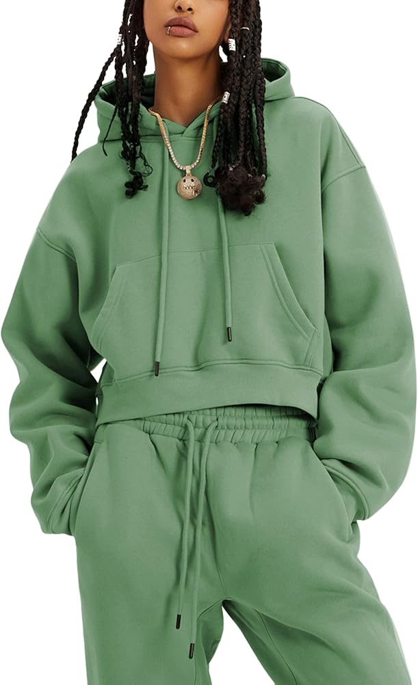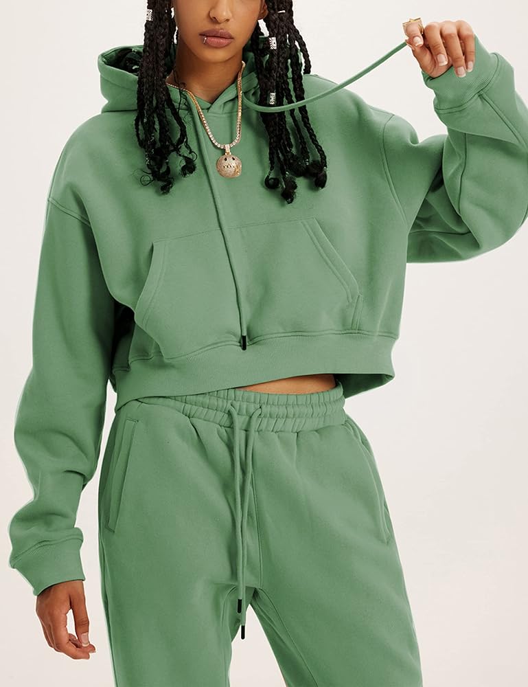 - سويت شيرت قصير: أكمام طويلة، جيوب الكنغر، هوديس بحاشية مضلعة مع فتحات للإبهام. سترات نسائية عصرية ورياضية، اختيار مثالي في خزانة ملابسك.