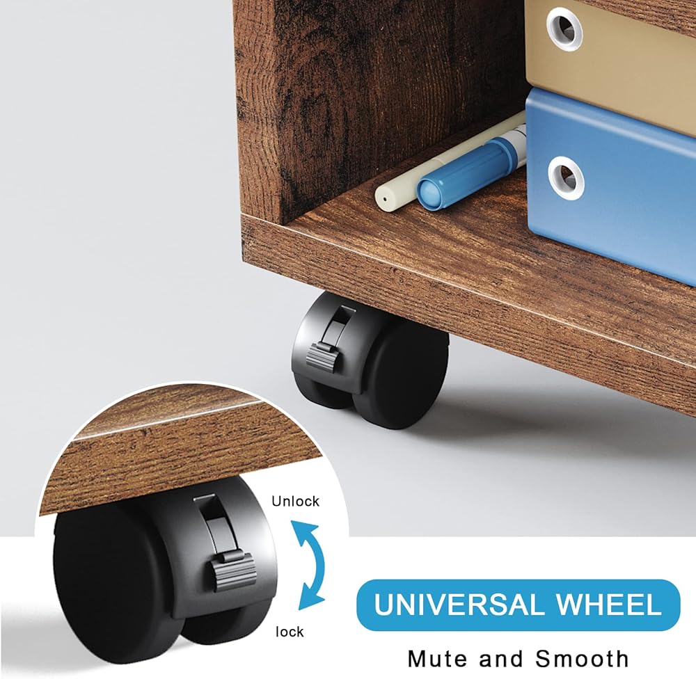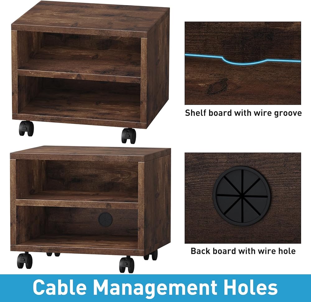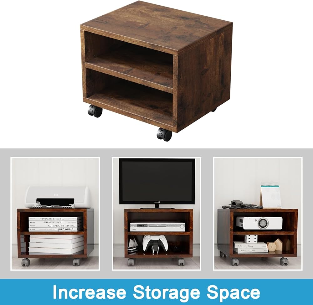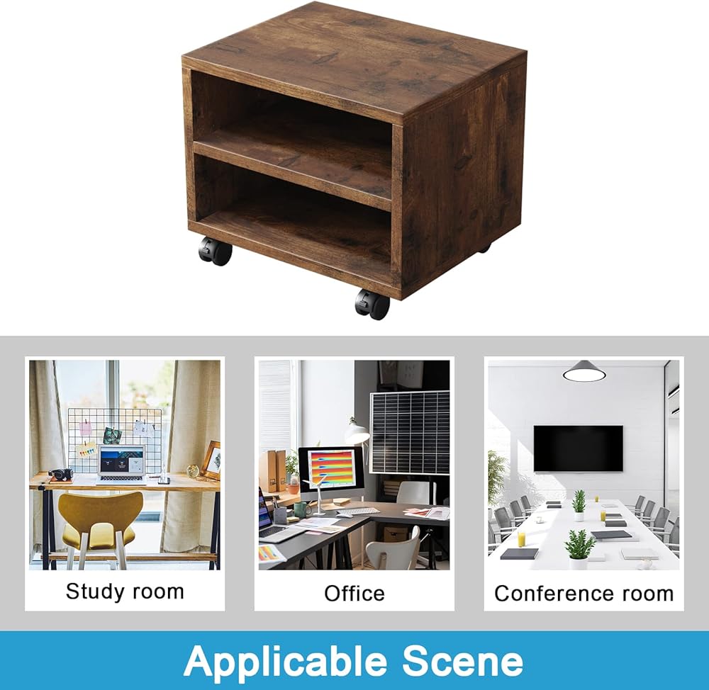 تصميم فريد: يتميز حامل الطابعة عالي التحمل هذا بتصميم من طبقتين: منصة علوية واسعة لشاشتك أو الكمبيوتر المحمول ومساحتين للتخزين المفتوحتين مع رف قابل للتعديل في المنتصف. أربع عجلات تجعل من السهل تحريك الحامل وتأمينه، مما يمنع التدحرج غير المرغوب فيه.