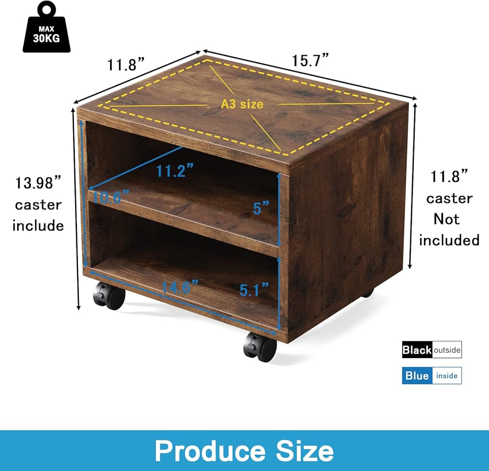 خامة عالية الجودة - مصنوع من لوحة E1، حامل الطابعة الموجود تحت المكتب هذا قوي ومتين. الأبعاد الإجمالية هي 15.7 عرض × 11.8 عمق × 11.8 ارتفاع. إذا كان لديك أي أسئلة، فلا تتردد في الاتصال بنا.