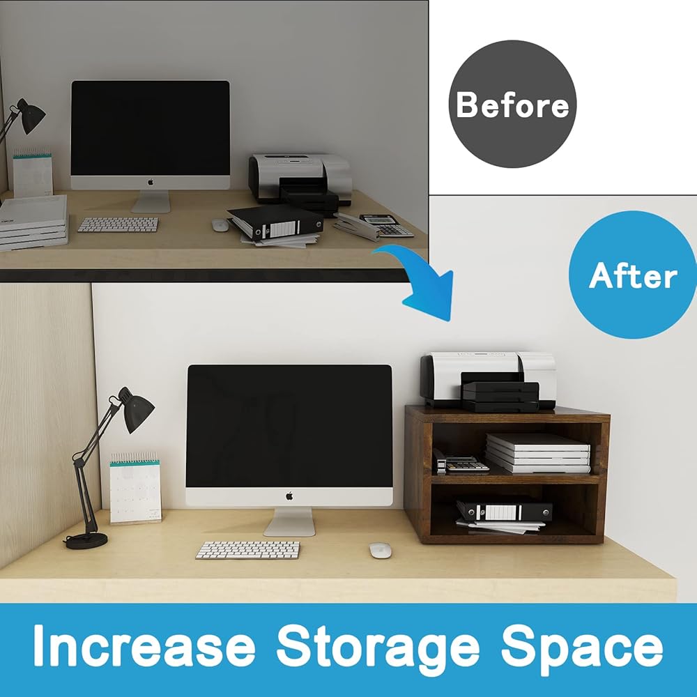 متين ومستقر - منظم سطح المكتب الخشبي هذا قوي في البناء ويتحمل الحمل بما يكفي لدعم الطابعة أو الشاشة في الاستخدام اليومي، ويمكن تكديسه لمزيد من الراحة.