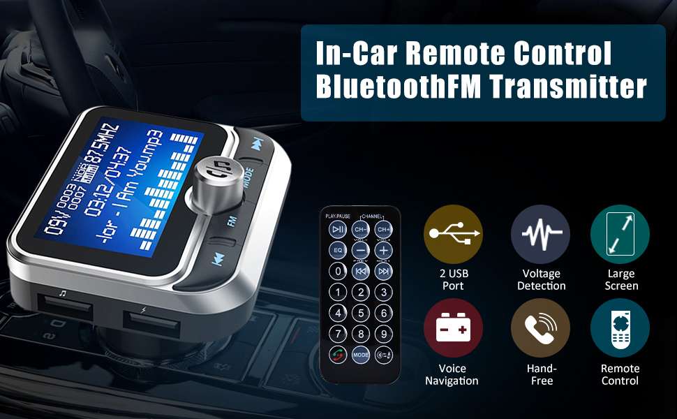 [شاشة كبيرة وتوافق واسع]: تصميم بلوتوث لجهاز إرسال FM للسيارة مع جهاز تحكم عن بعد، شاشة كبيرة 1.4 بوصة تعرض مستوى الجهد الكهربي في بطارية السيارة، كما أنها قادرة على إظهار رقم المكالمات الواردة وحجم الصوت وتردد FM واسم الأغنية أثناء تشغيل الموسيقى من بطاقة Micro SD أو U-disk، ويعمل محول الراديو هذا مع الأجهزة المتوافقة، متوافق مع iPhone XS/ XS Max/ X، iPhone 8/ 8 plus/7/ 7 plus، Samsung، Huawei، Xiaomi، LG، Blackberry، Sony والكمبيوتر اللوحي وأجهزة iPod وiPad وما إلى ذلك